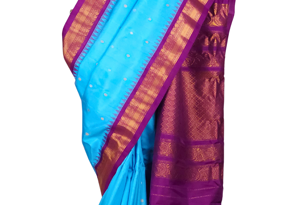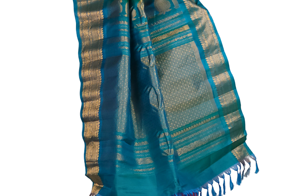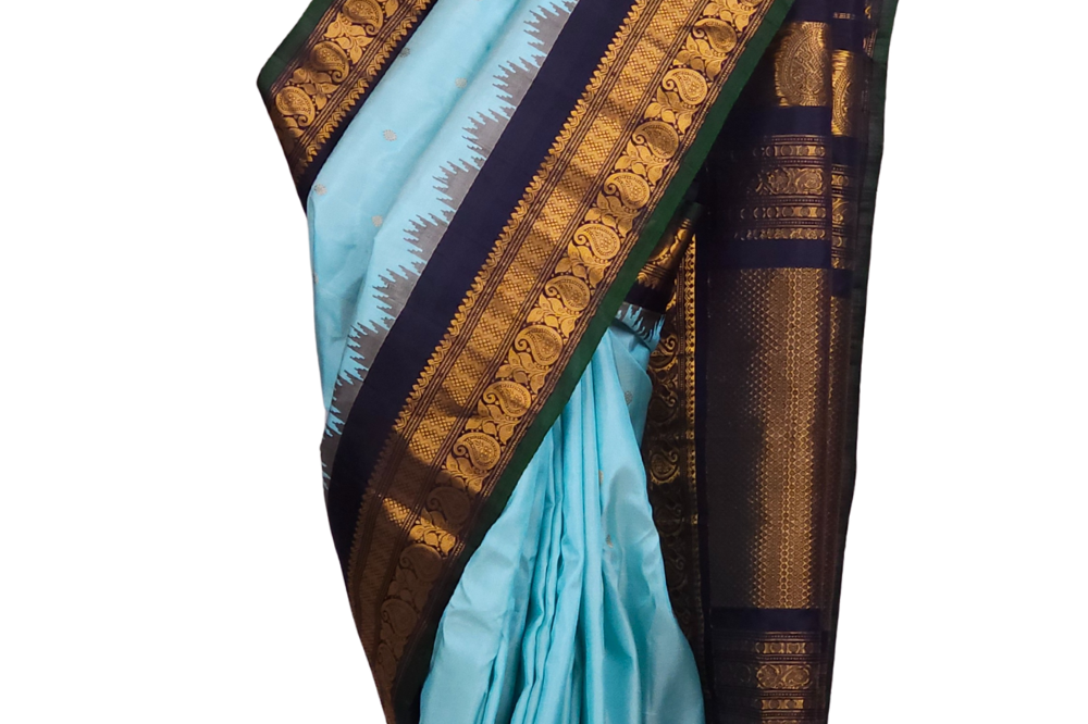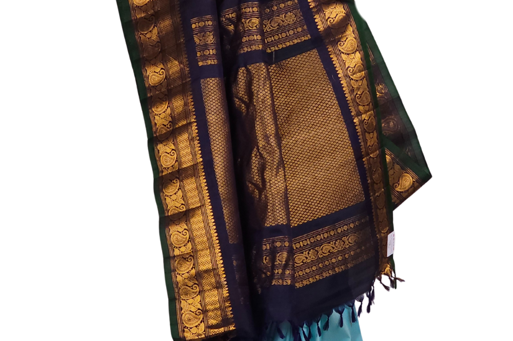 Light Copper Sulphate Blue Gadwal Silk Saree