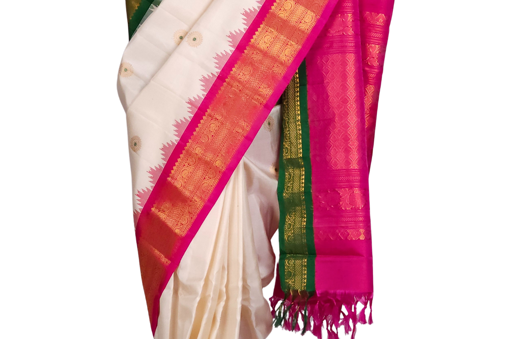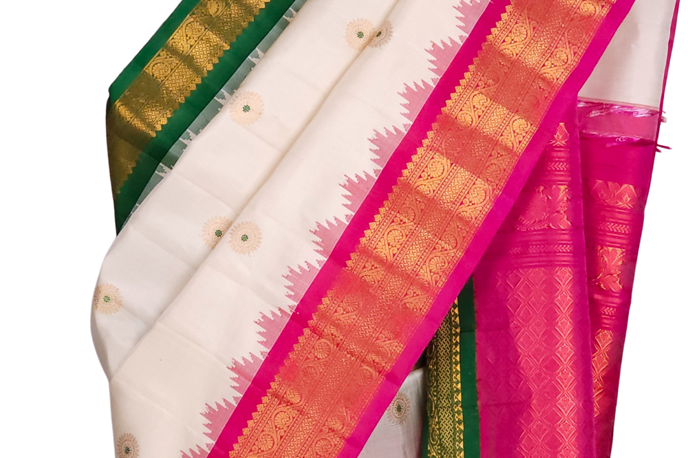 Half White Gadwal Silk Saree