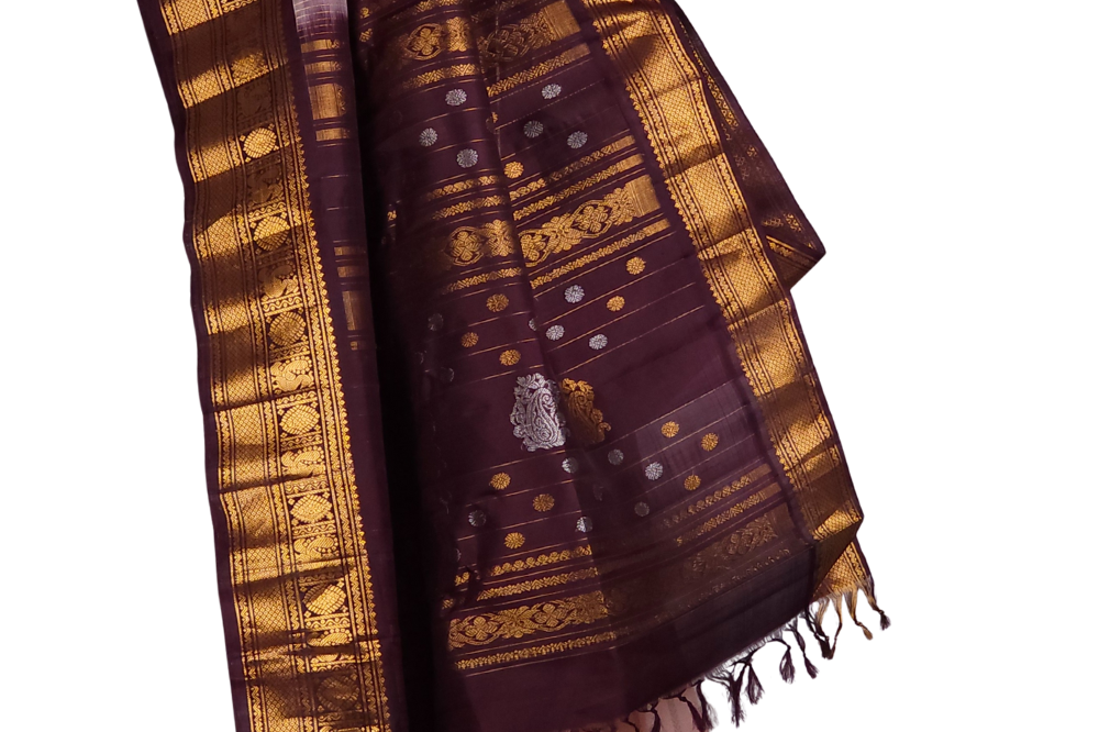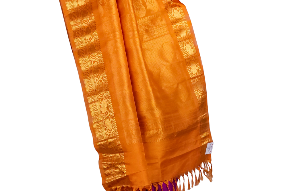 Experience the timeless beauty of 100% Pure Silk Handloom Gadwal Sarees, crafted by skilled artisans and certified by Silk Mark for purity. These sarees feature intricate handwoven zari patterns, rich textures, and a lightweight feel that makes them ideal for weddings, festive occasions, and cultural celebrations.