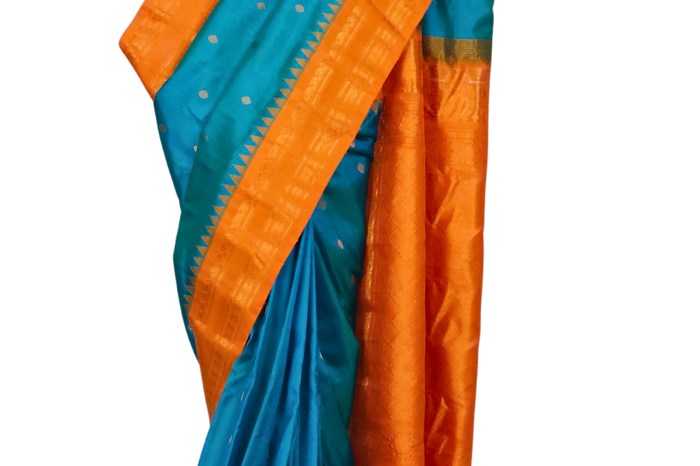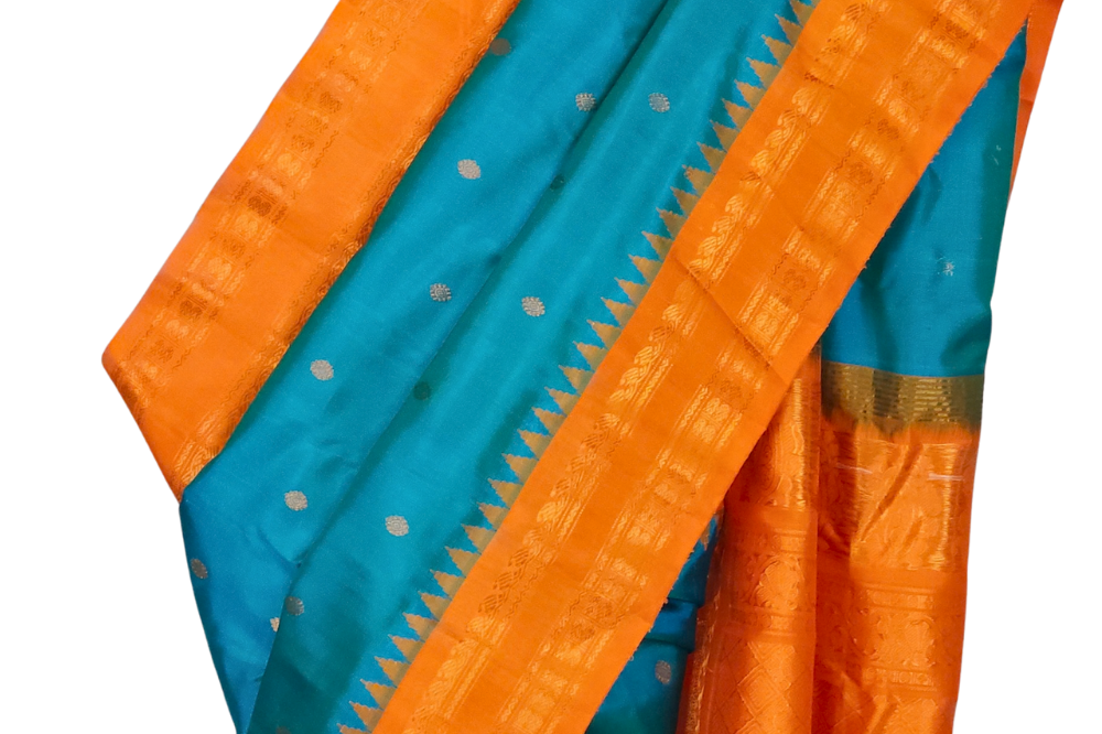 Teal Blue Gadwal Silk Saree