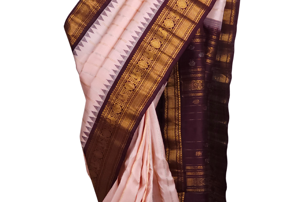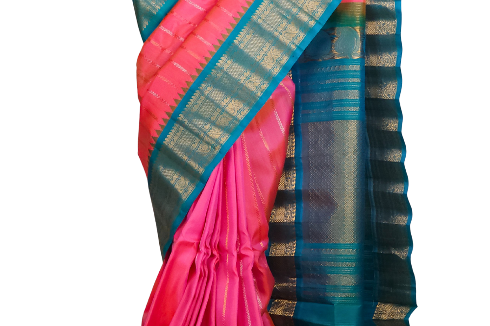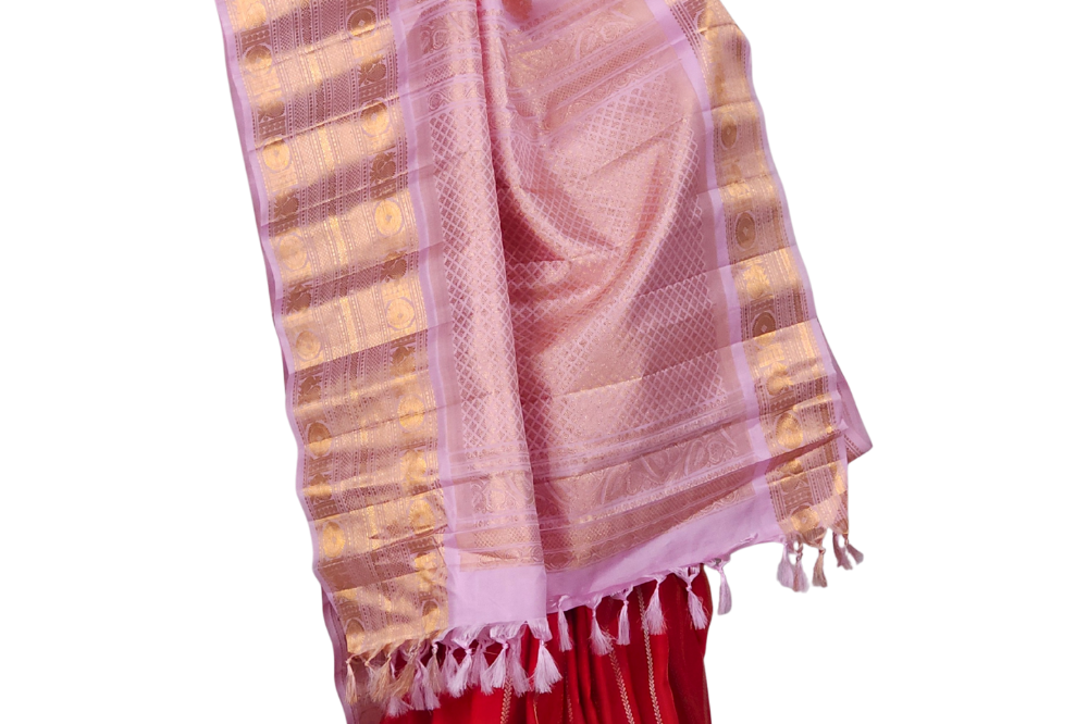 Dual Shade Of Loust Pink & Gold Gadwal Silk Saree