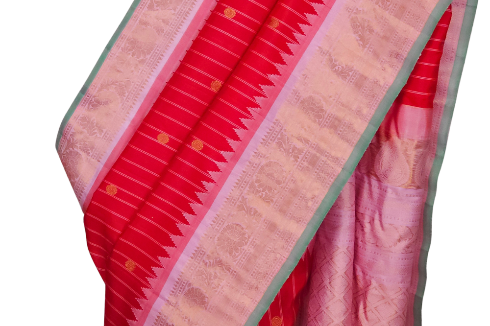Red Gadwal Silk Saree