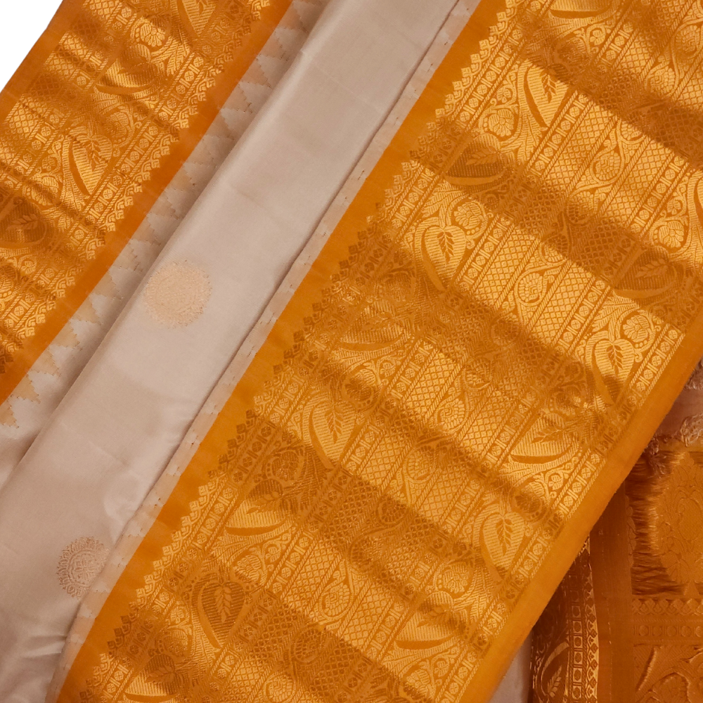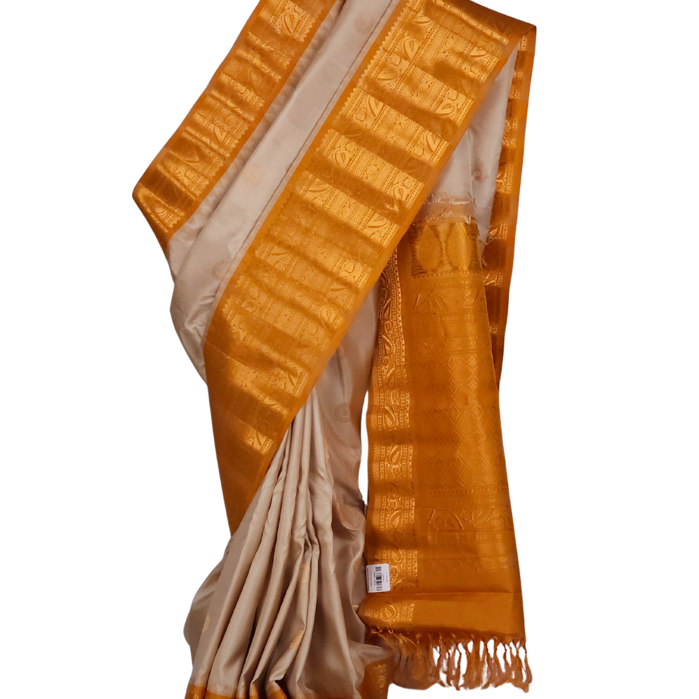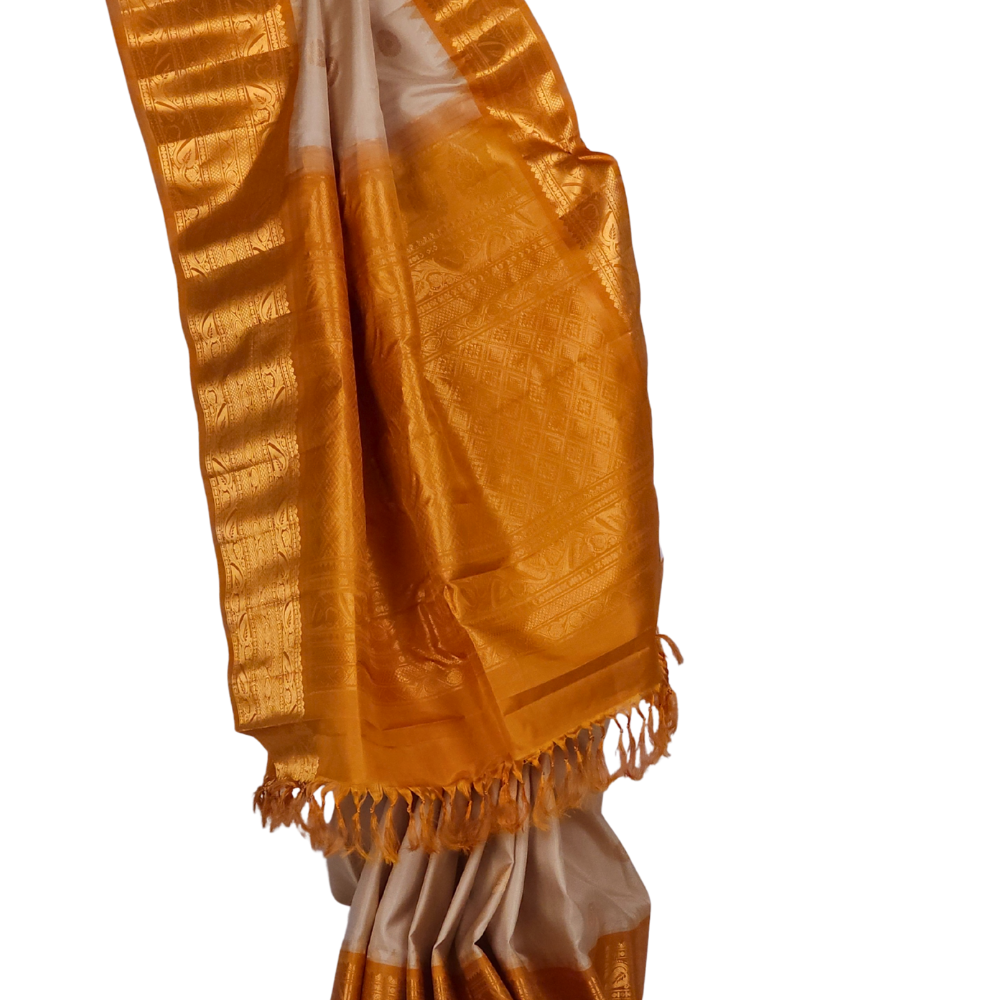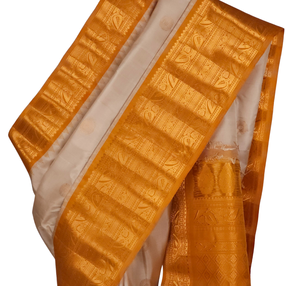Experience the richness of traditional Indian craftsmanship with our Handloom Pure Gadwal Silk Saree,Intricate zari-woven buttas exquisite zari-woven Kanchi borders with Traditional zari brocade design on the pallu paired with contrast blouse