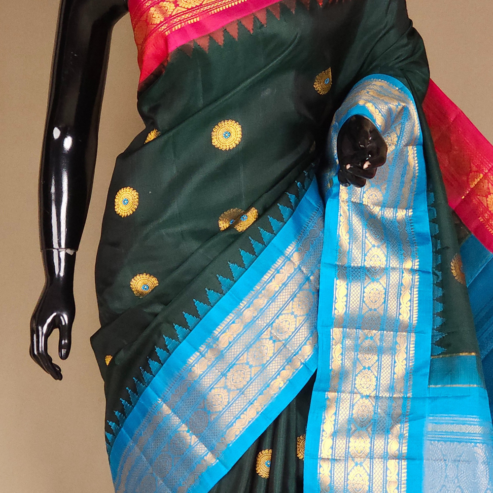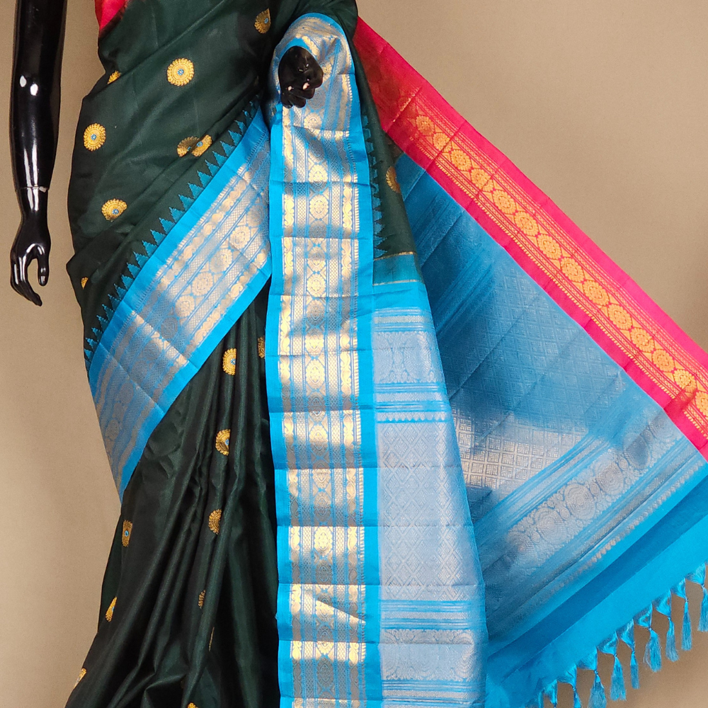 Deep Green Gadwal Silk Sarees