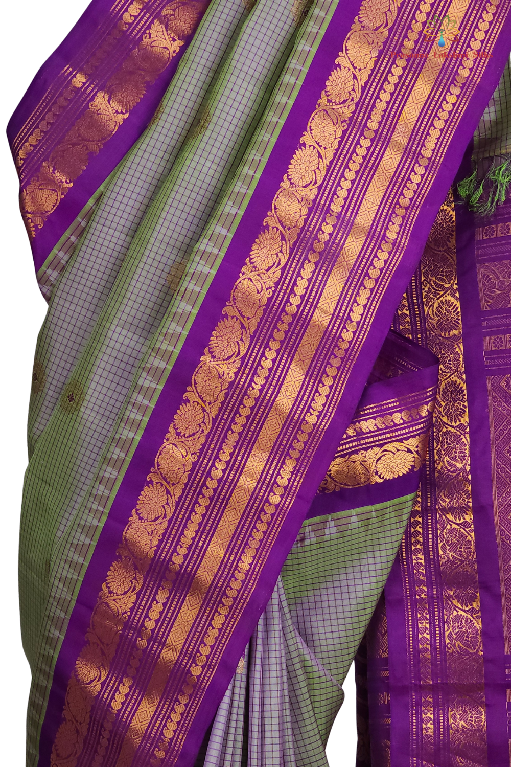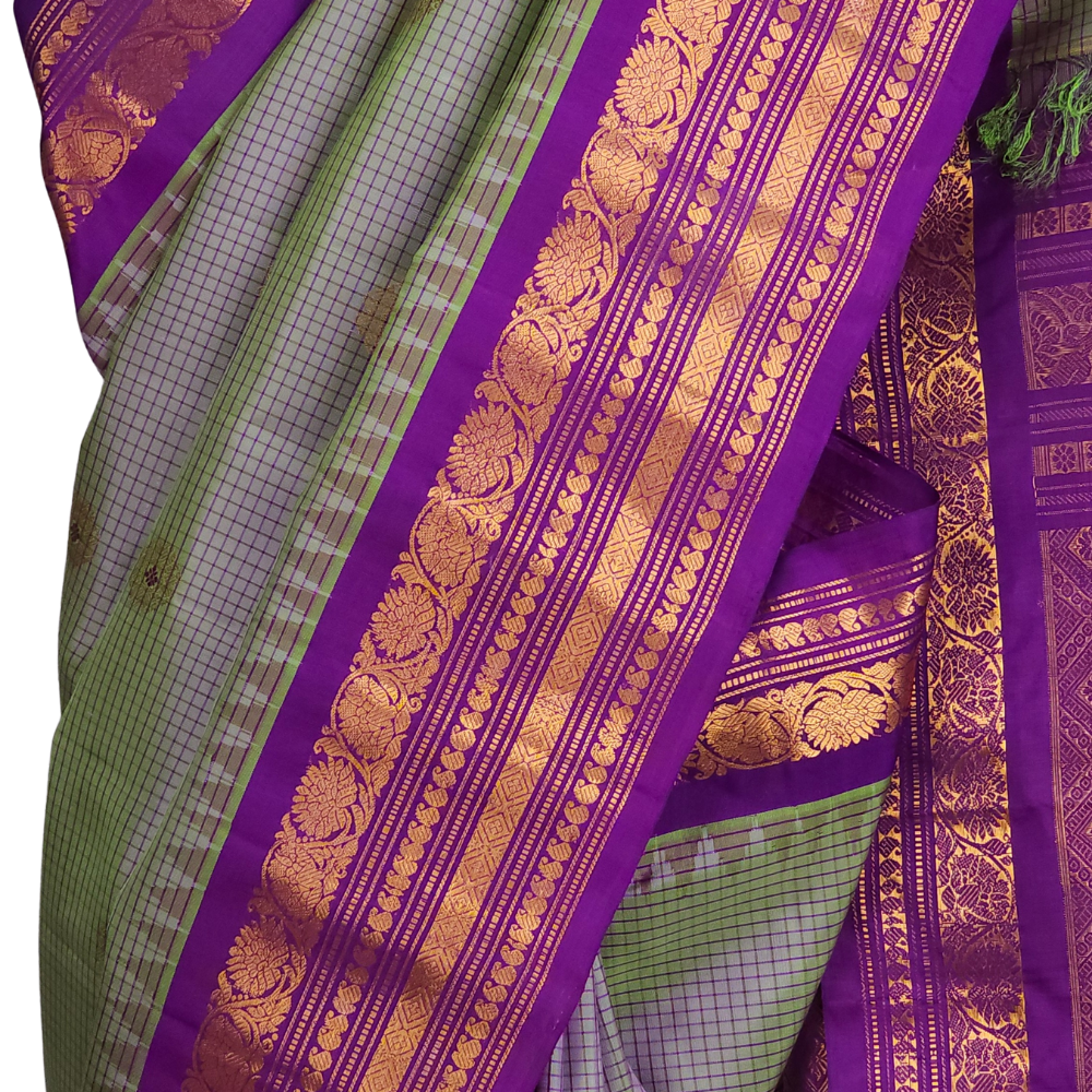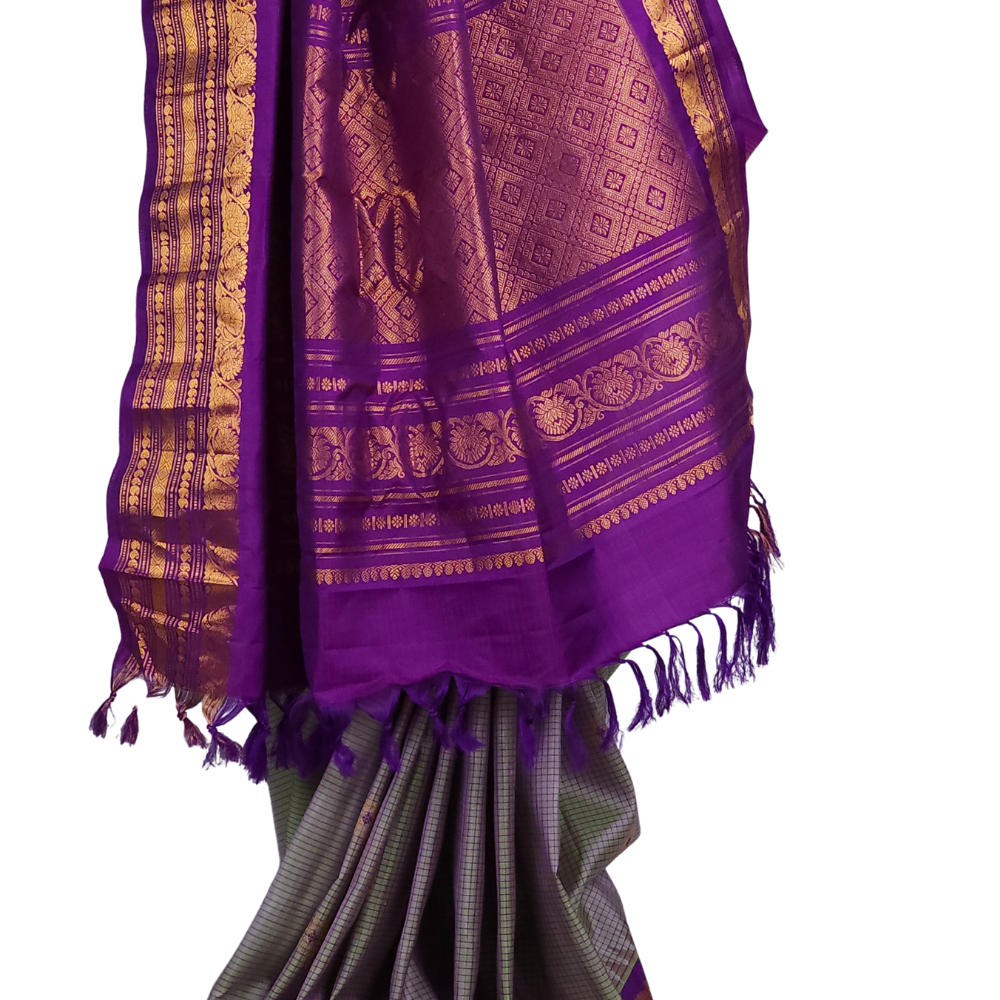 Dual Of Shade Green & Purple Gadwal Silk Saree