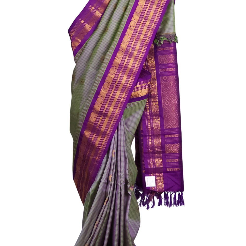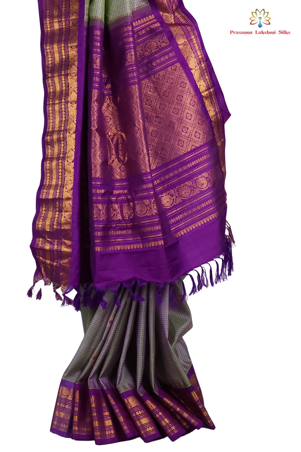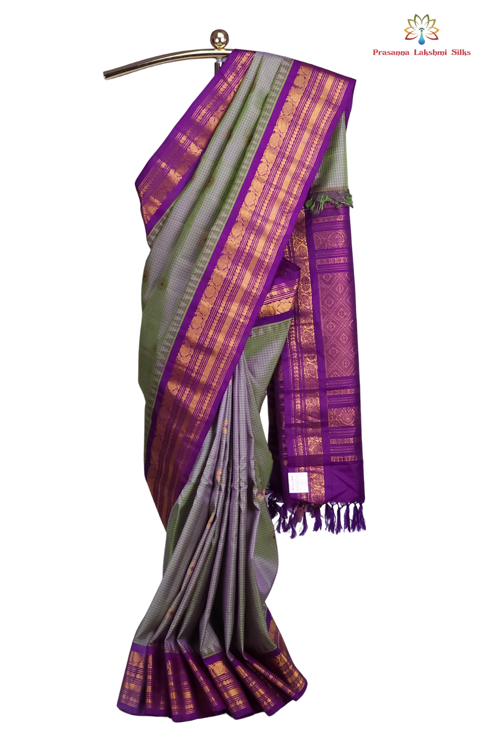 Dual Of Shade Green & Purple Gadwal Silk Saree