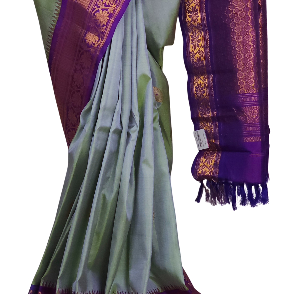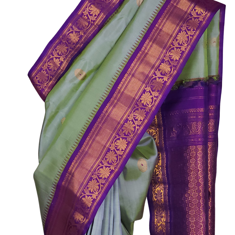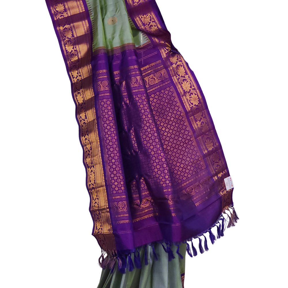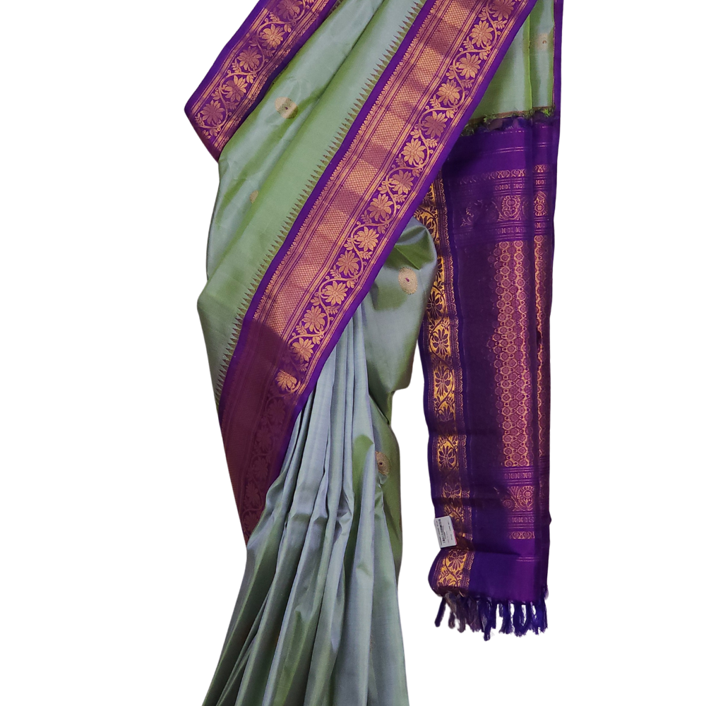 Dual Shade Of Purple & Green Gadwal Silk Saree