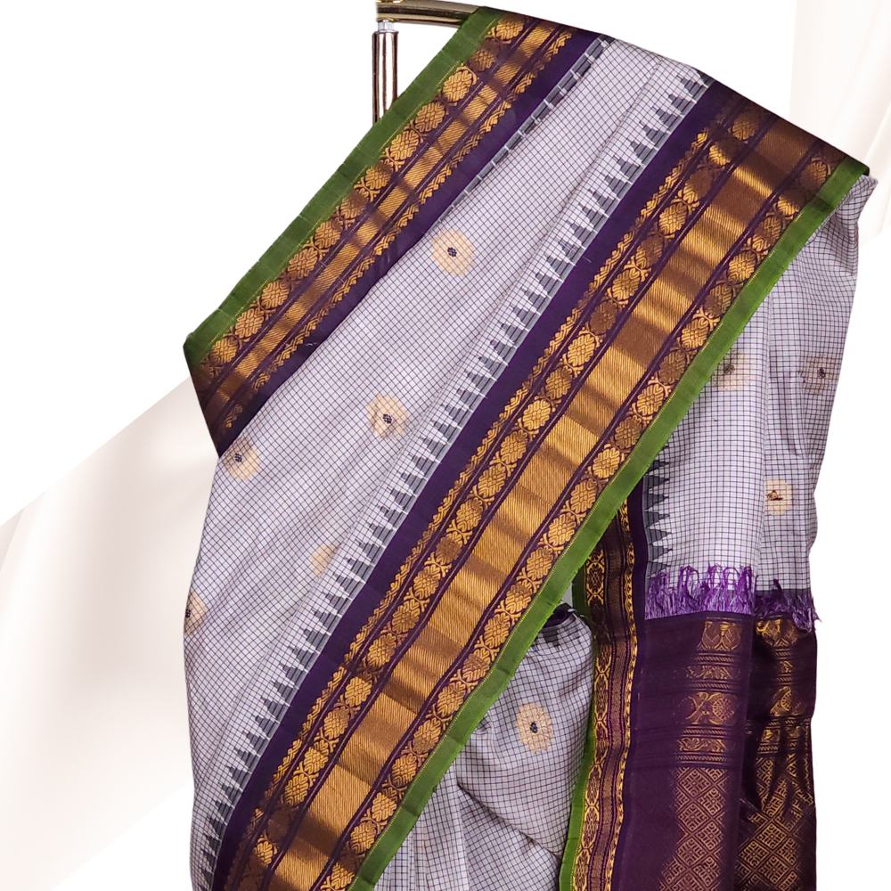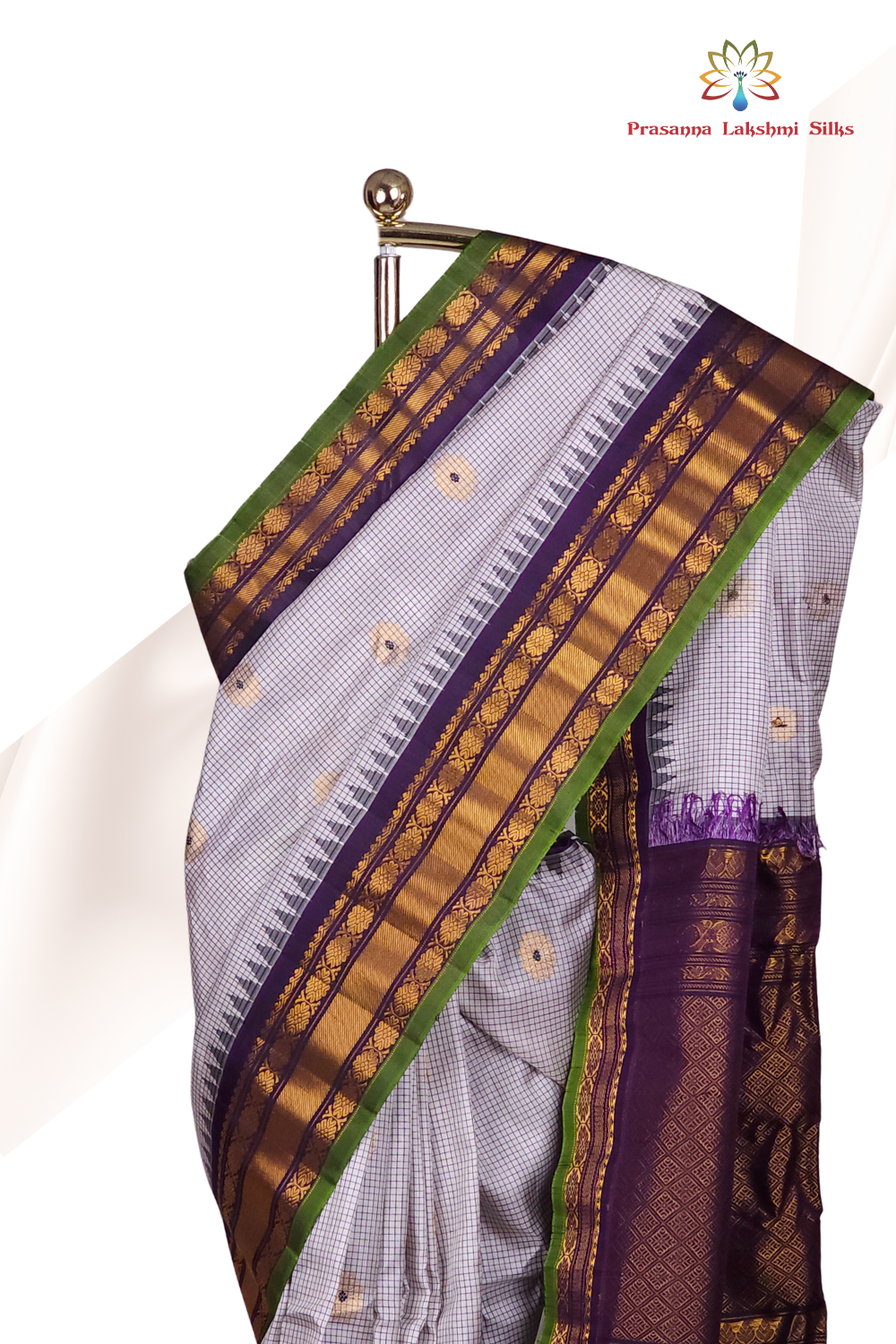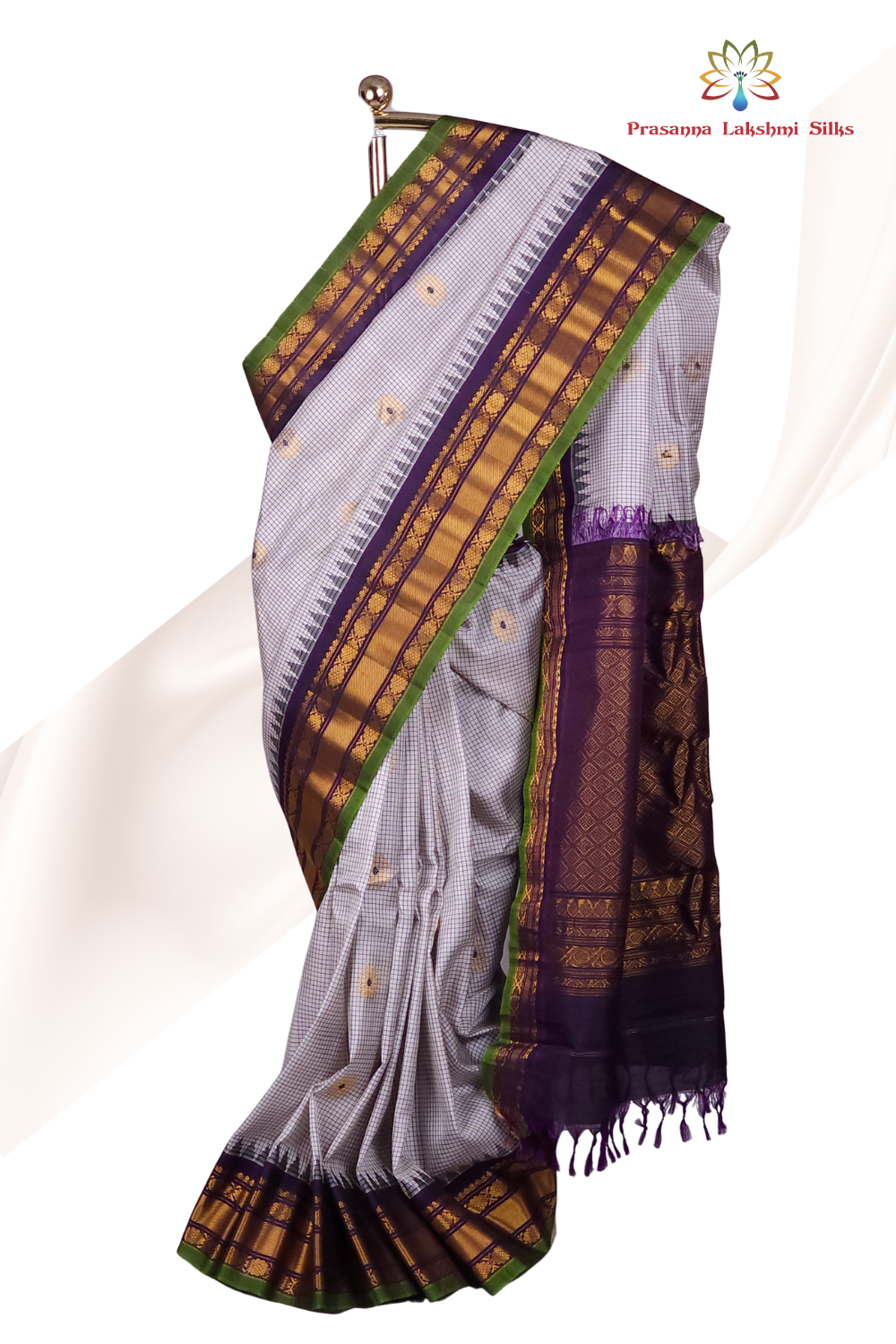 Elevate your elegance with our exquisite Handloom Gadwal Pure Silk Saree, adorned with classic checks pattern creating a timeless and elegant look with zari-woven borders and Rich zari-woven brocade that adorns the pallu, making every drape a statement.