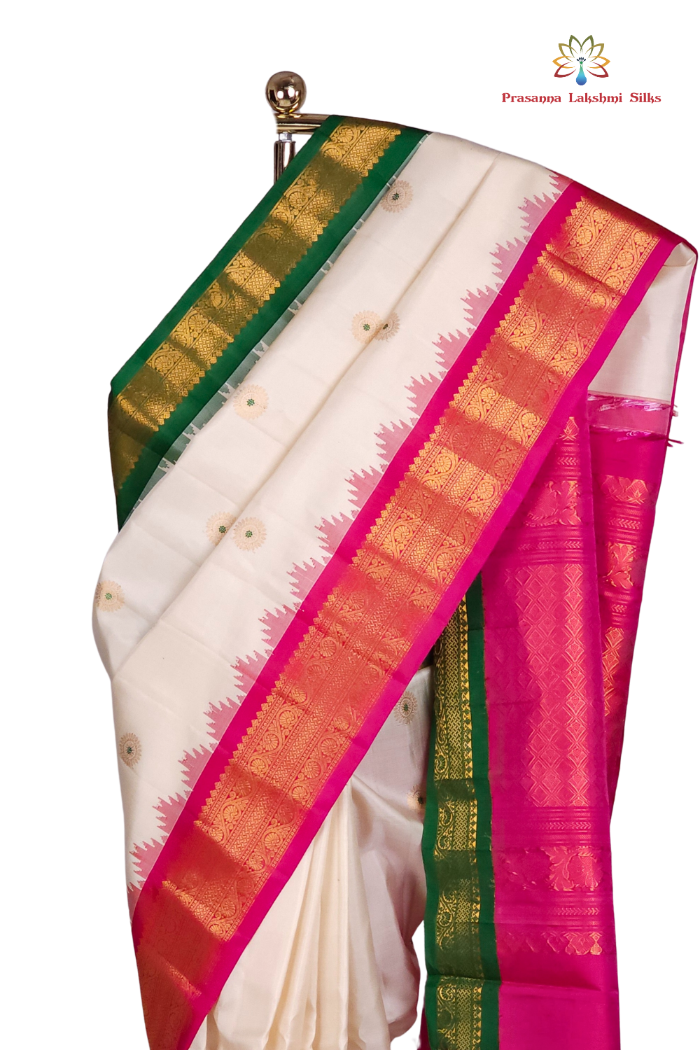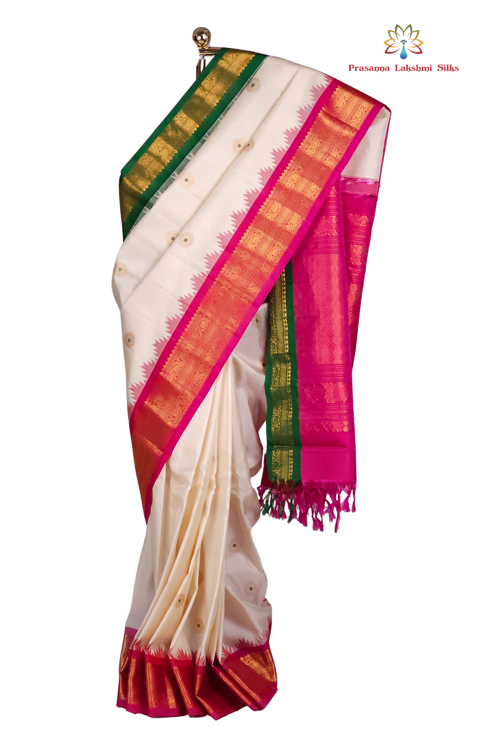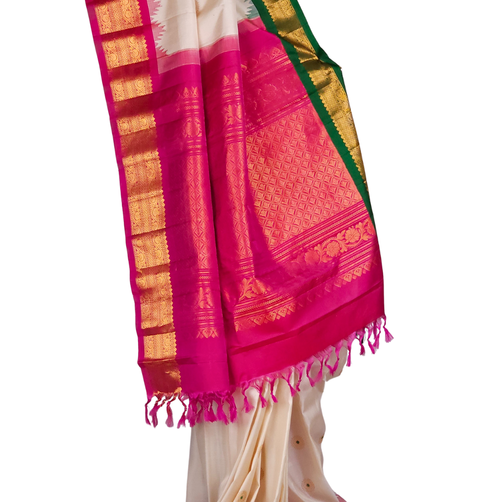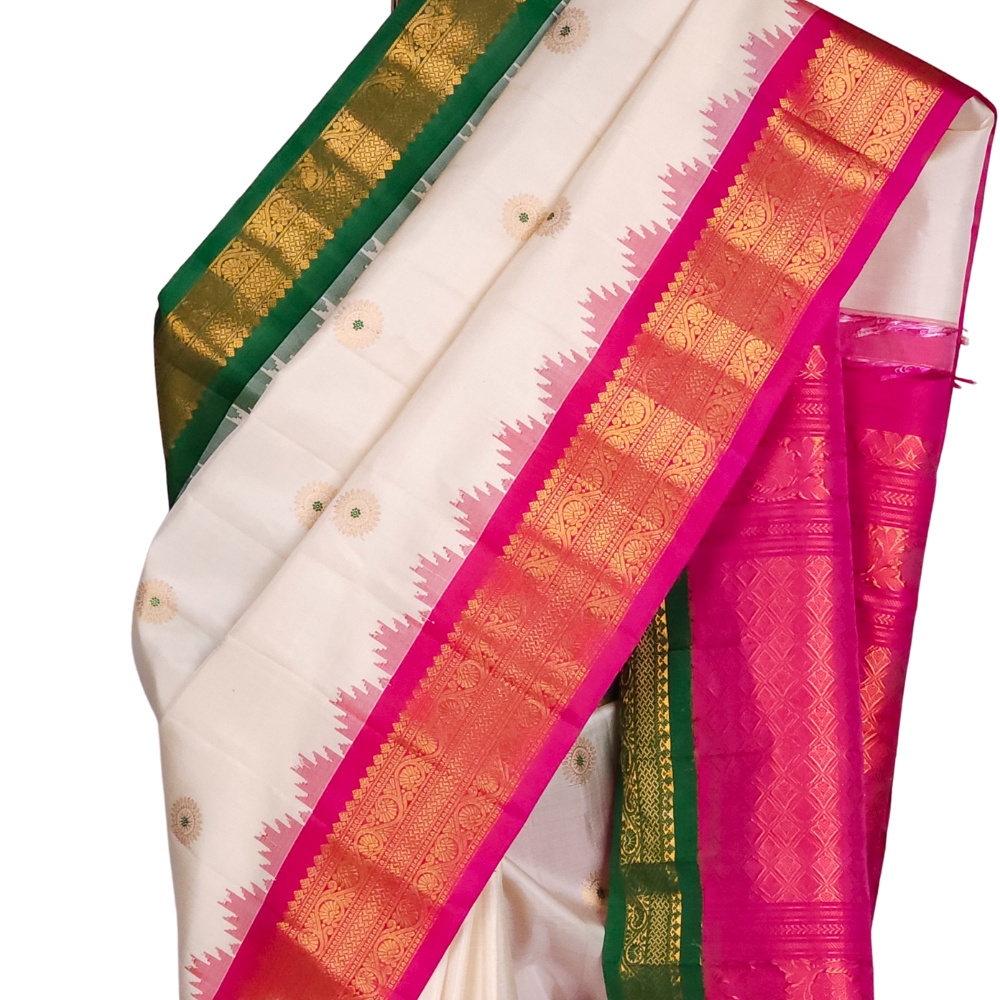 Half White Gadwal Silk Saree