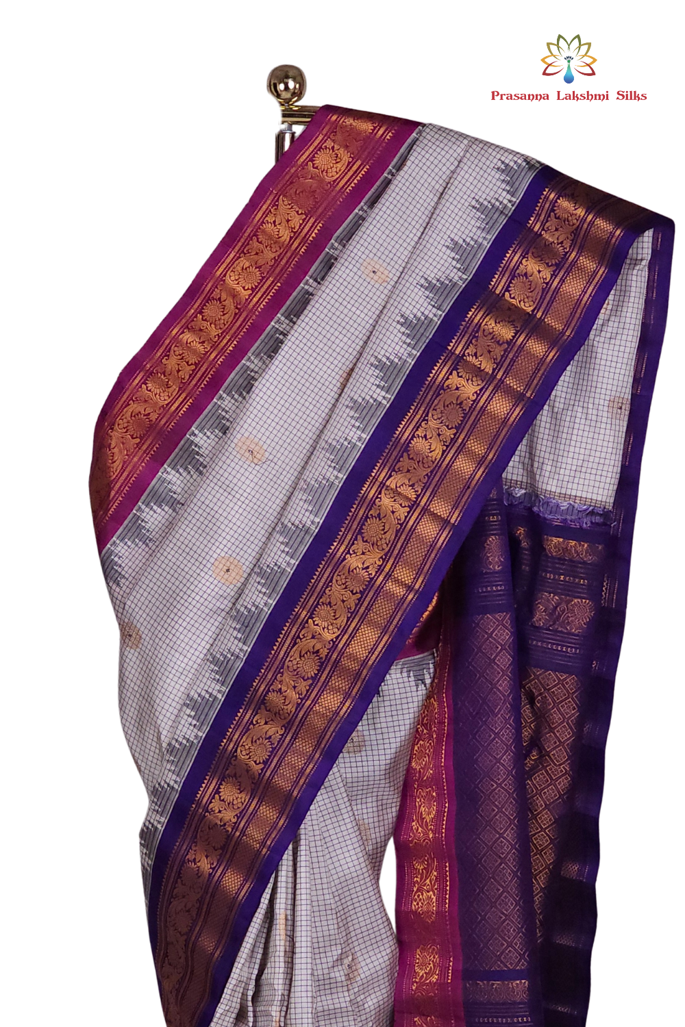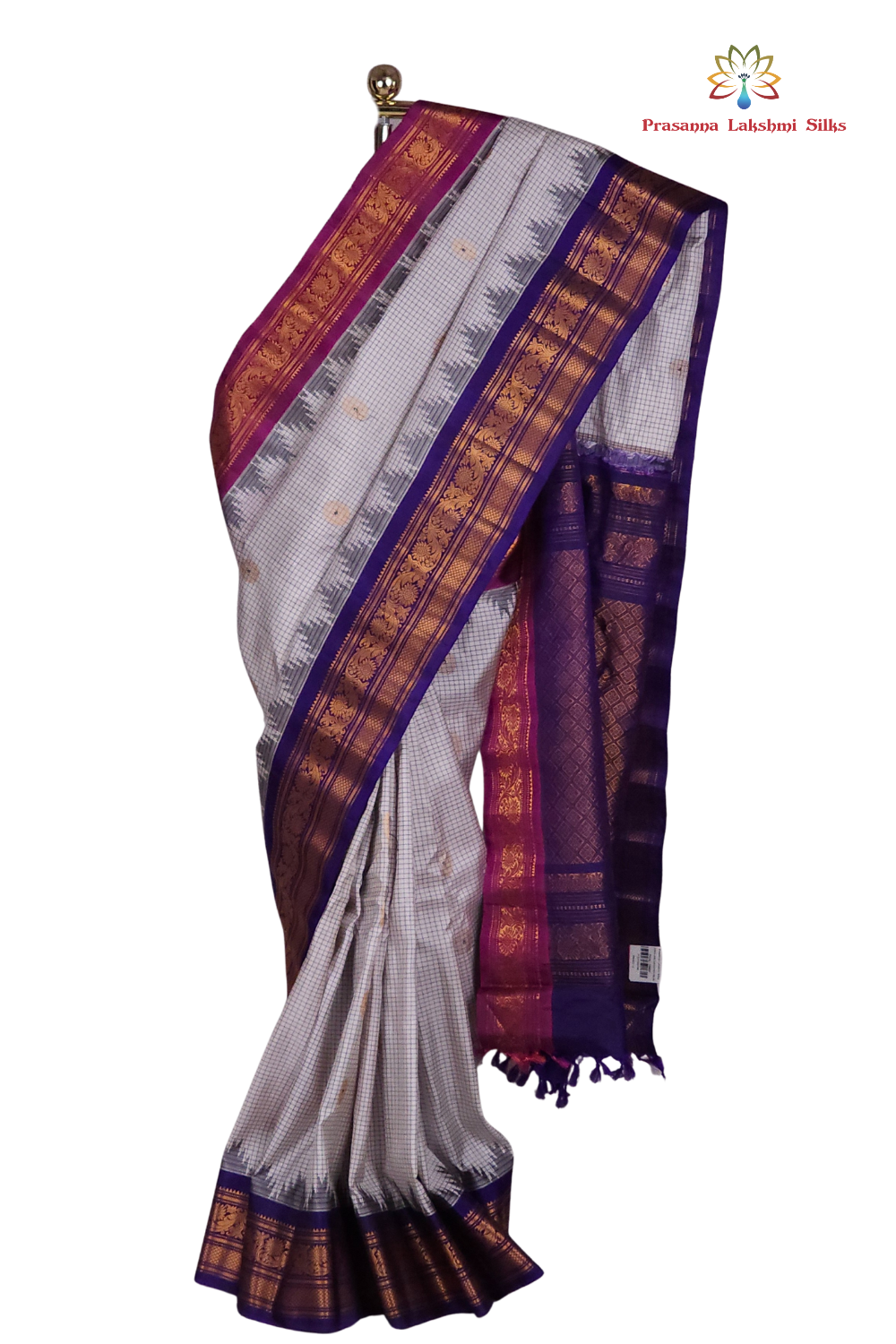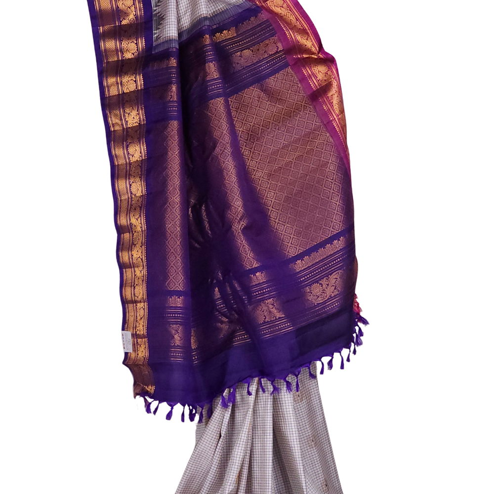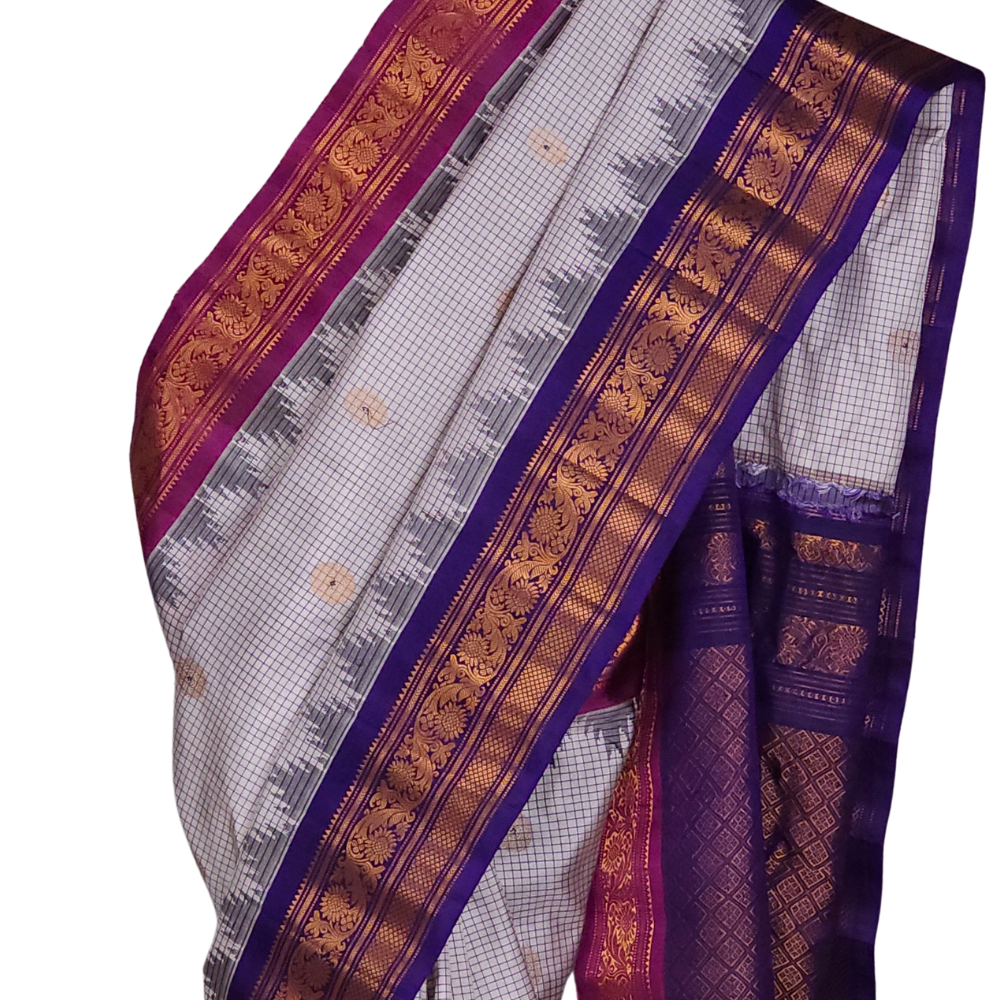 Half White Gadwal Silk Saree