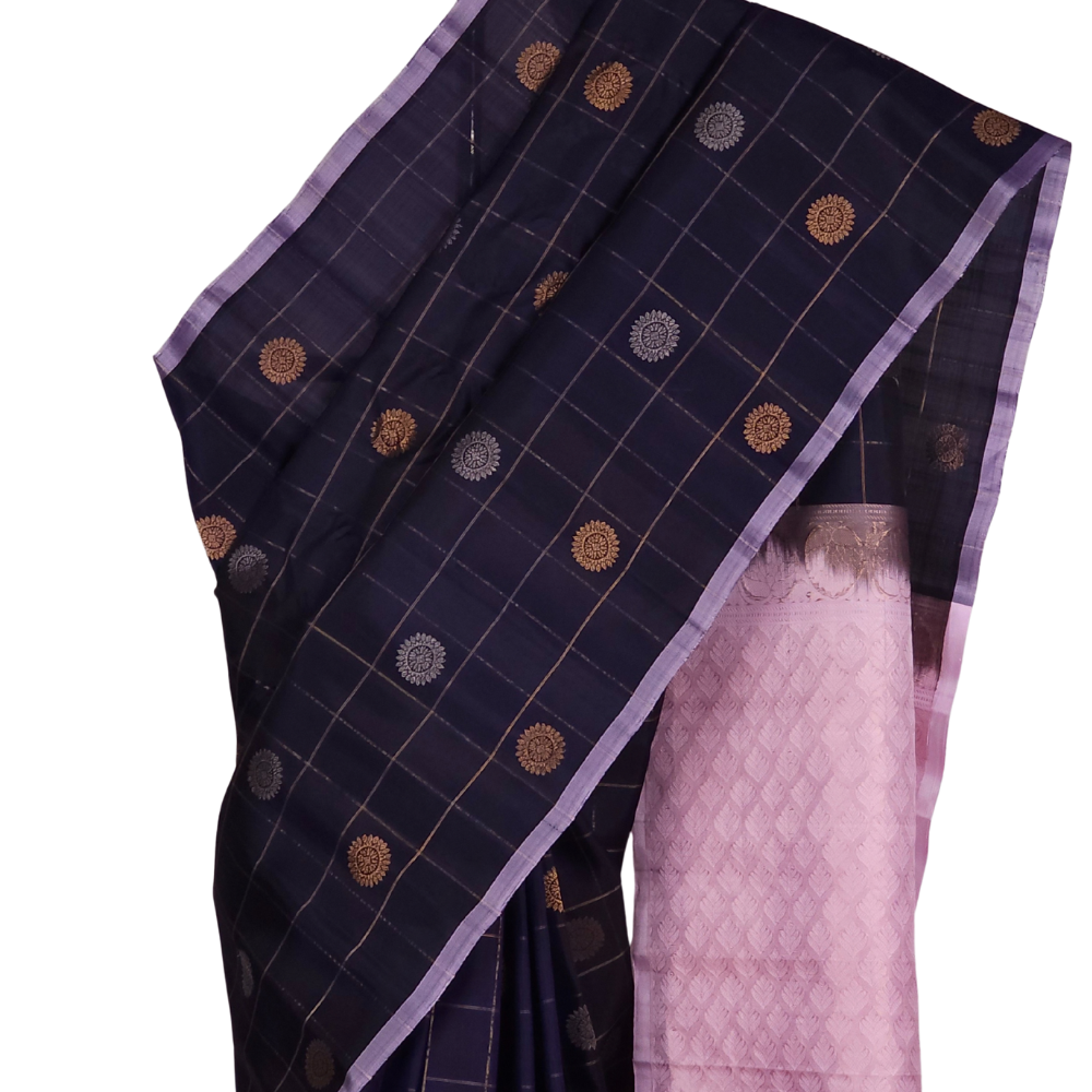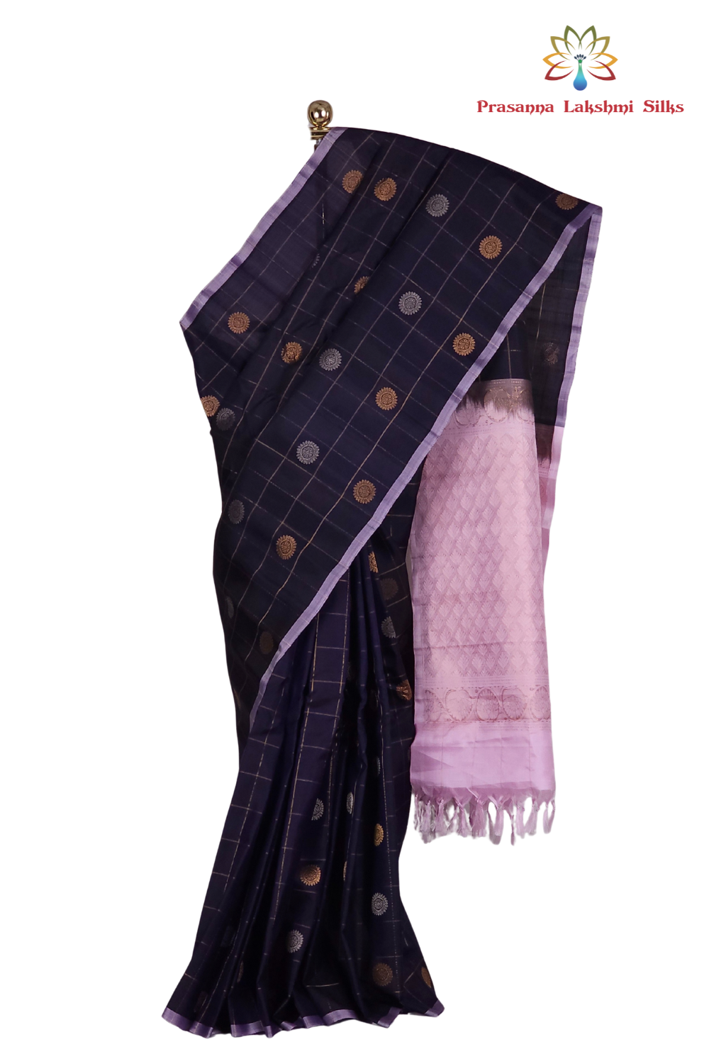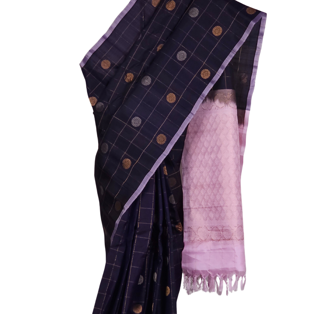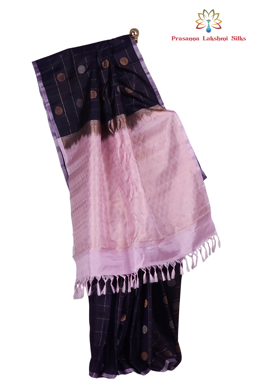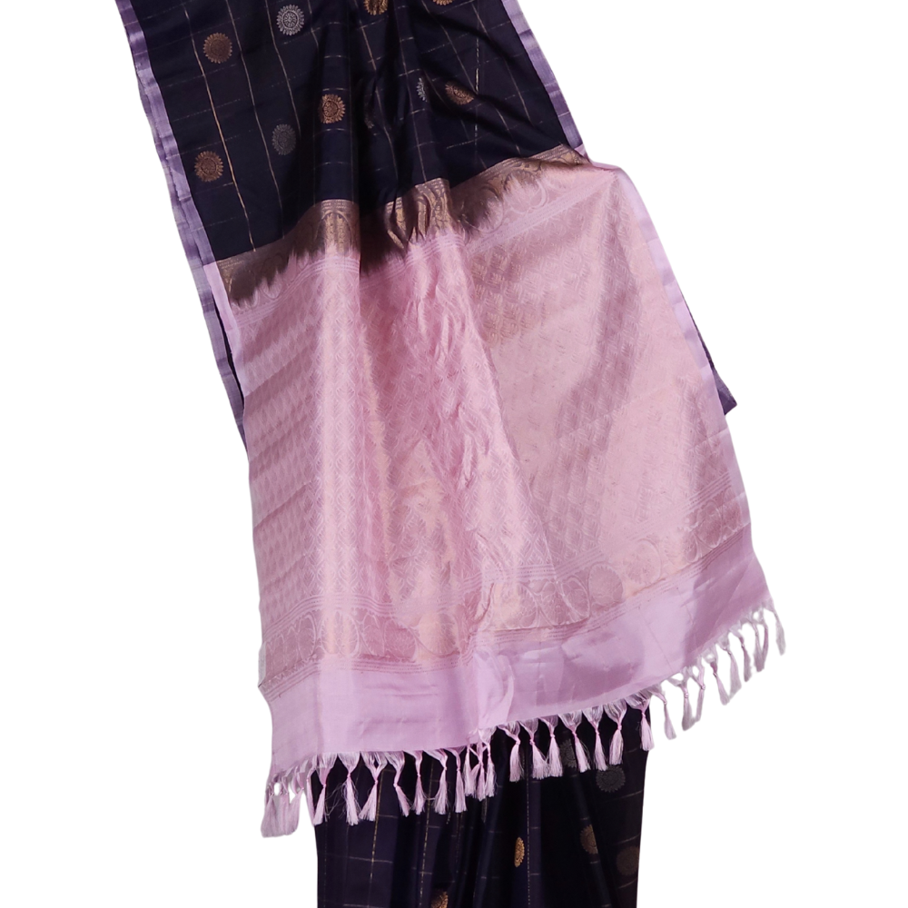 Elevate your elegance with our exquisite Handloom Gadwal Pure Silk Saree, adorned with classic checks pattern and Rich zari-woven brocade that adorns the pallu, making every drape a statement.