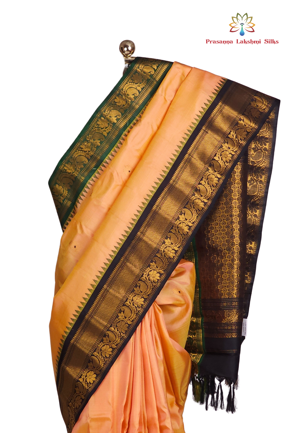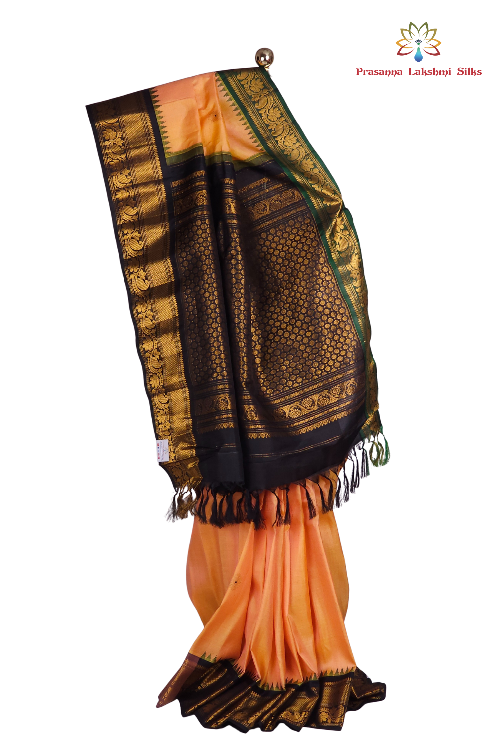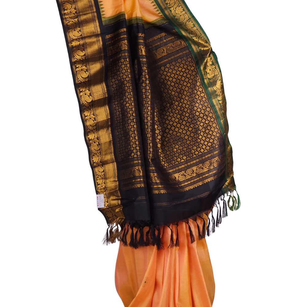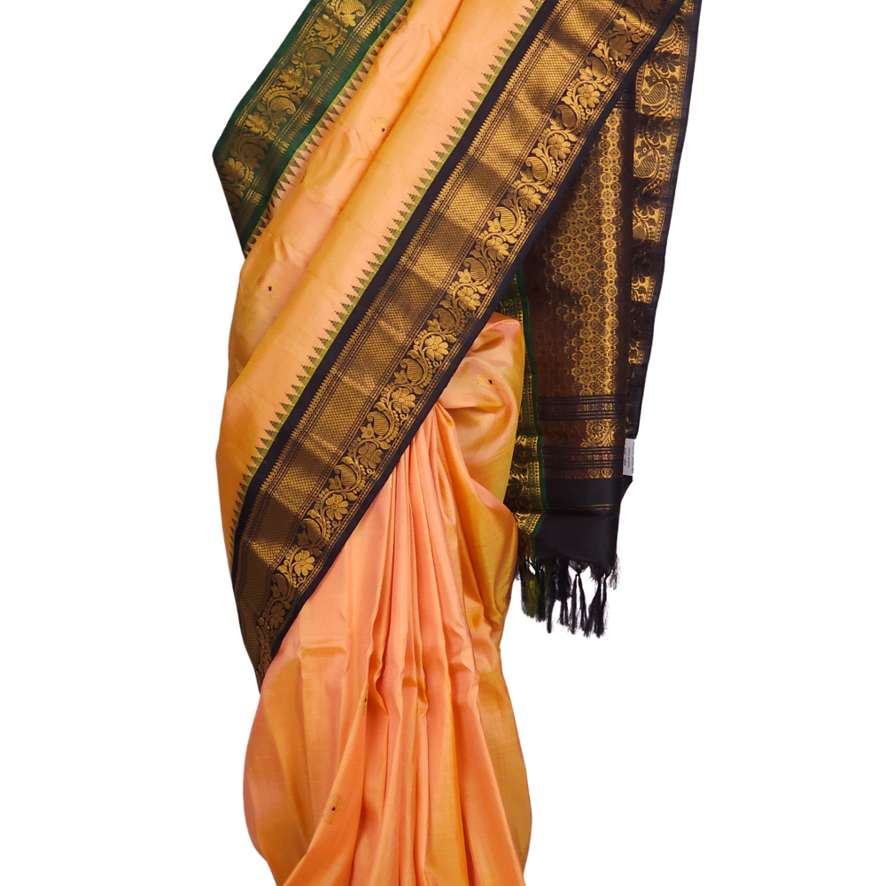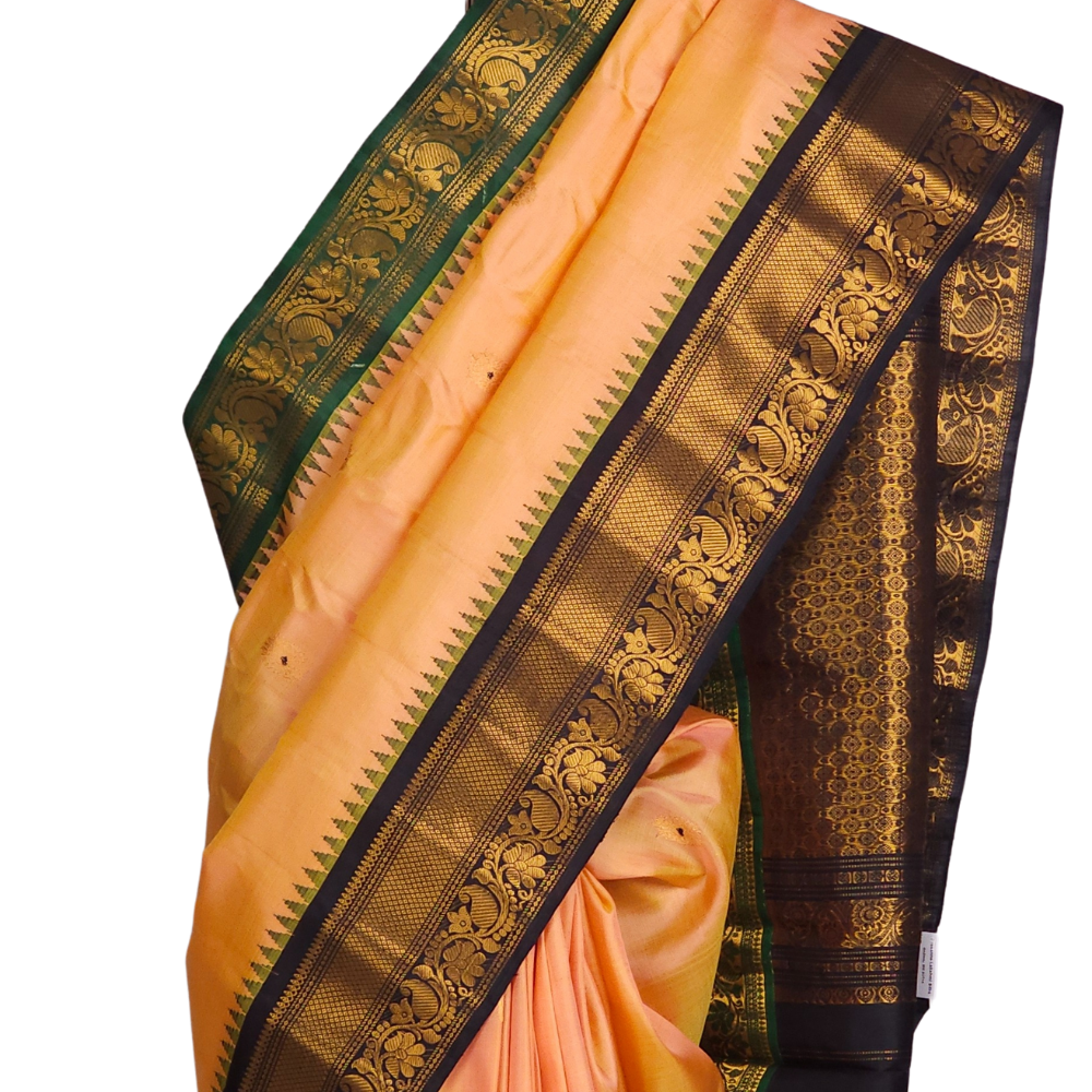 Elevate your elegance with our exquisite Handloom Gadwal Pure Silk Saree, adorned with Intricate zari motifs zari-woven borders Rich zari-woven brocade adorns the pallu, making every drape a statement.