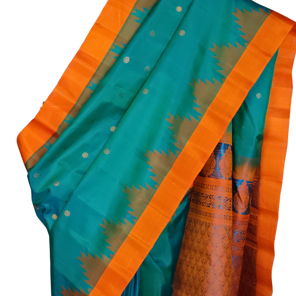 Peacock Green Gadwal Silk Saree