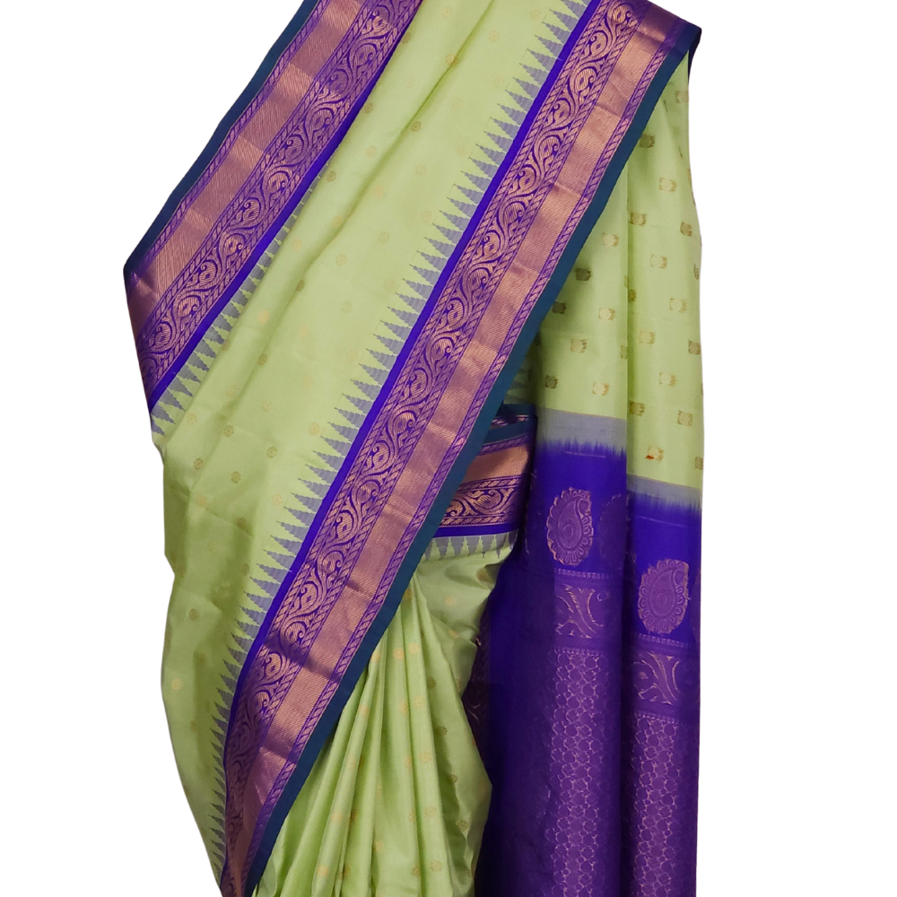 Discover the beauty of Handloom Gadwal Silk with our exquisite saree,classic checkered pattern creating a timeless look with zariwoven borders rich zari tissue pallu creating a stunning look..