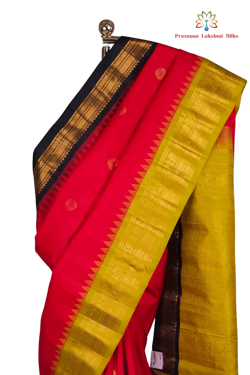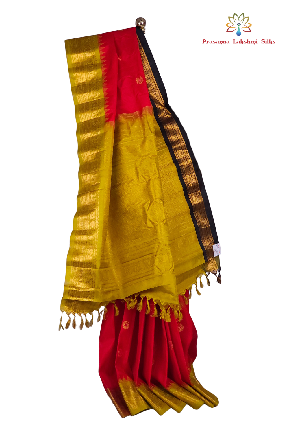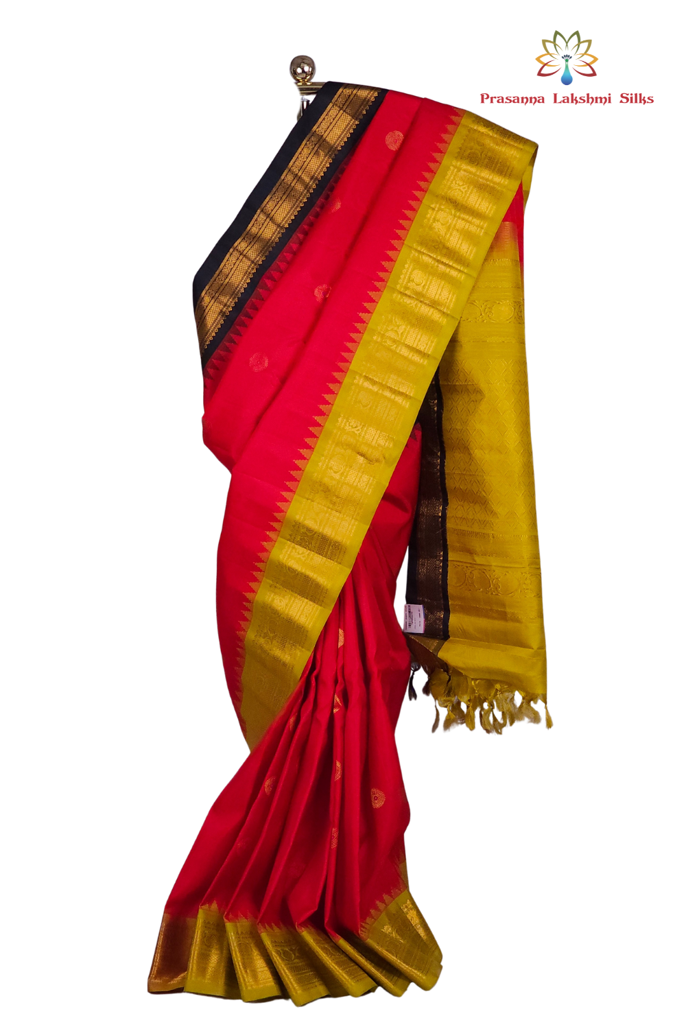 Elevate your elegance with our exquisite Handloom Gadwal Pure Silk Saree, adorned with Intricate zari motifs zari-woven borders Rich zari-woven brocade adorns the pallu, making every drape a statement.