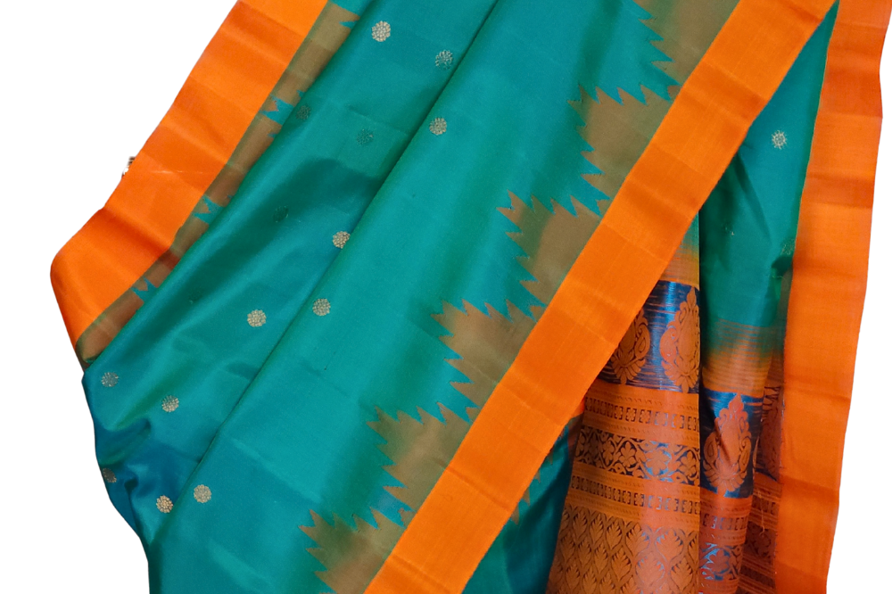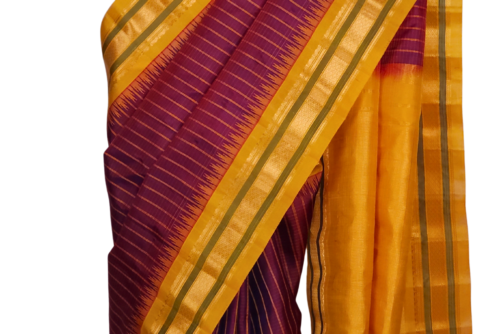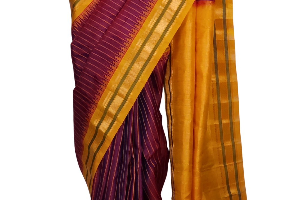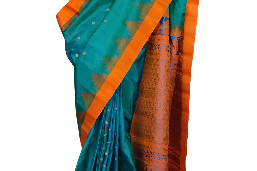 Dual Shade Of Peach & Gold Gadwal Silk Saree