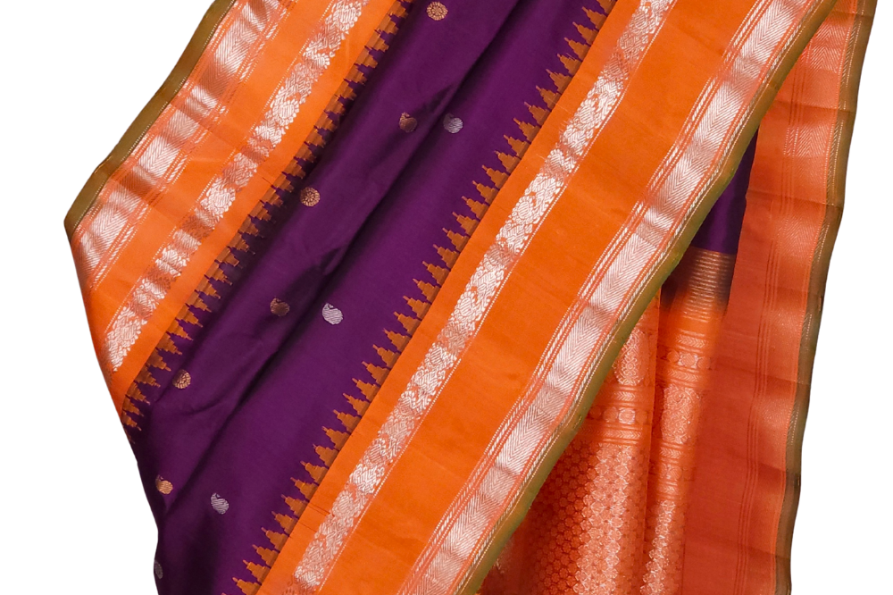 Experience the timeless beauty of 100% Pure Silk Handloom Gadwal Sarees, crafted by skilled artisans and certified by Silk Mark for purity. These sarees feature intricate handwoven zari patterns, rich textures, and a lightweight feel that makes them ideal for weddings, festive occasions, and cultural celebrations.