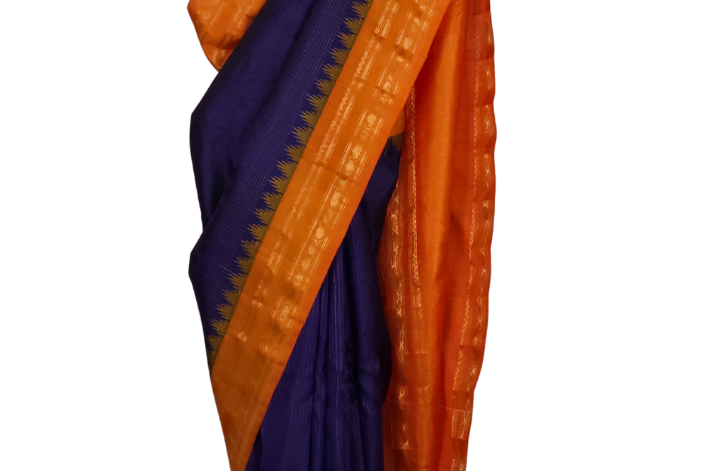 Dual Shade Of Blue & Maroon Gadwal Silk Saree