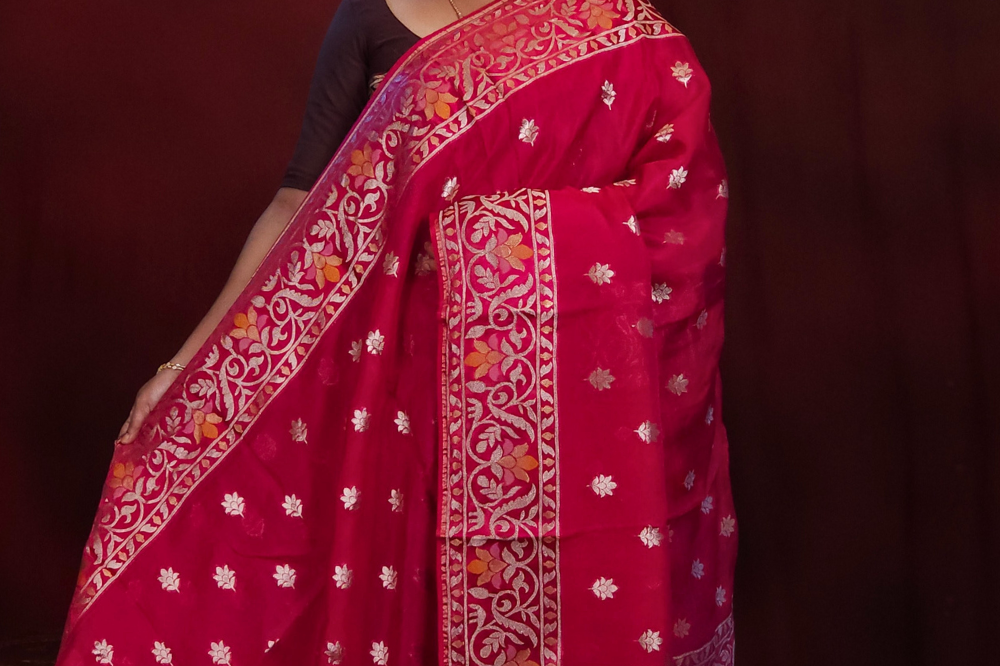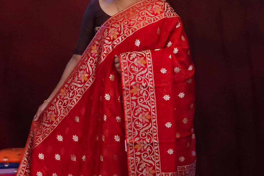 Experience the timeless beauty of 100% Pure Silk Handloom Gadwal Sarees, crafted by skilled artisans and certified by Silk Mark for purity. These sarees feature intricate handwoven zari patterns, rich textures, and a lightweight feel that makes them ideal for weddings, festive occasions, and cultural celebrations.