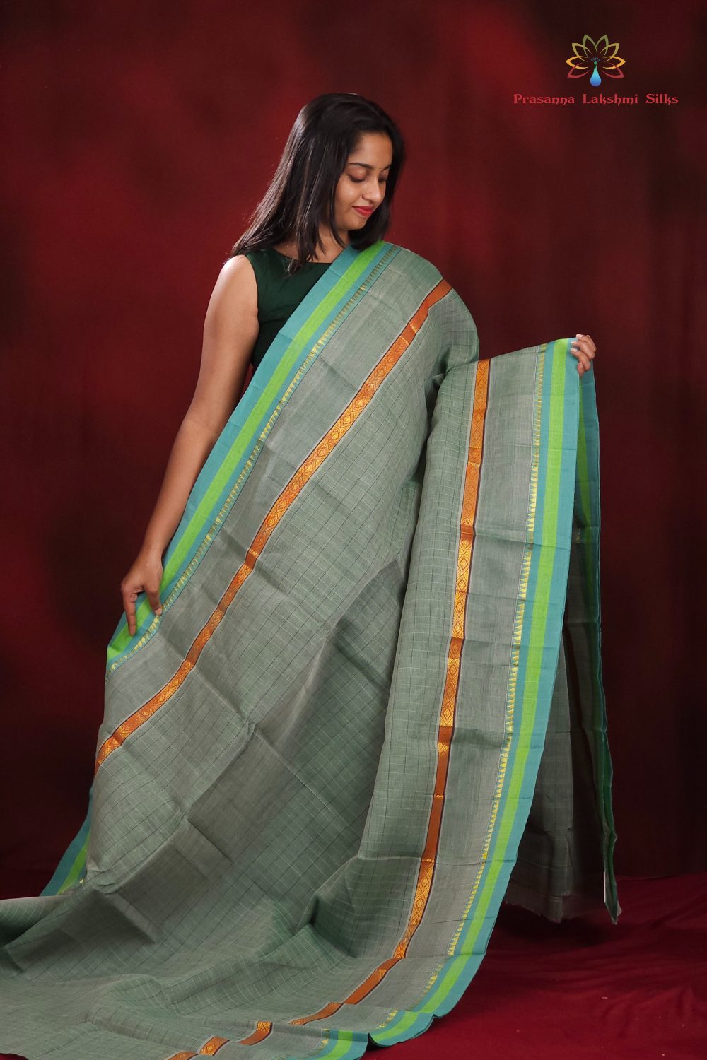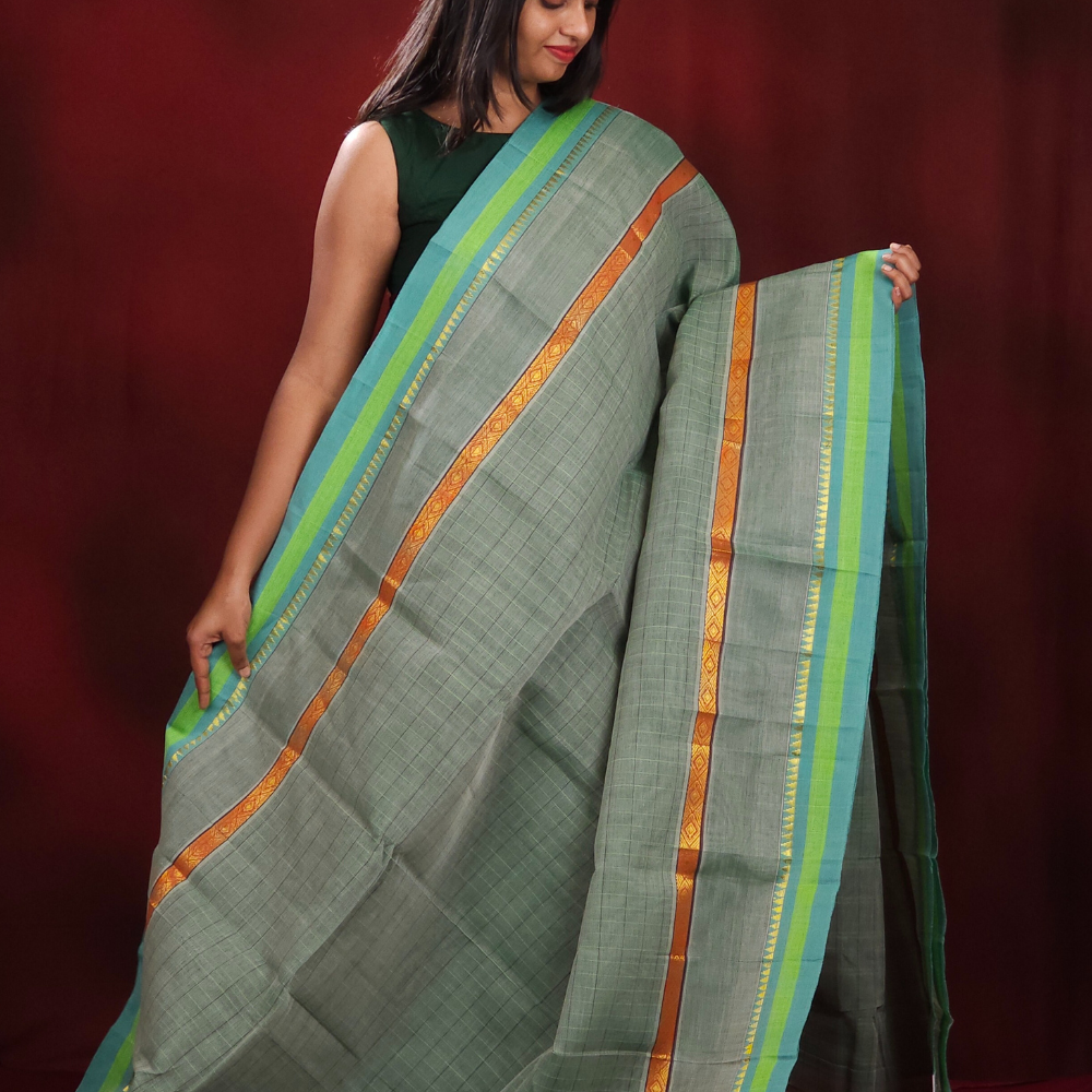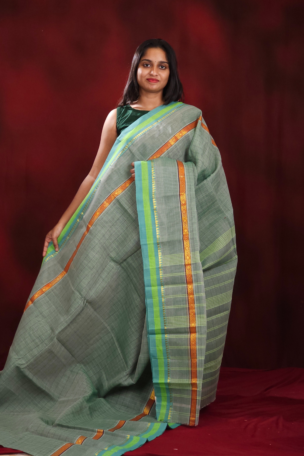 Dual Shade Of Green & Ash Narayanpet Cotton Saree