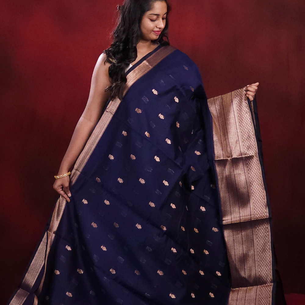 Navy Blue Banaras Silk cotton sarees