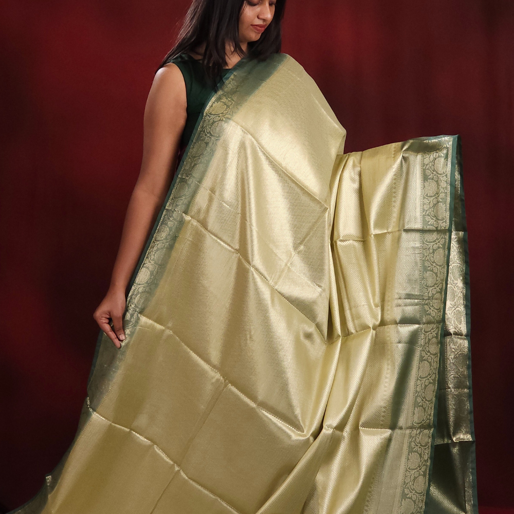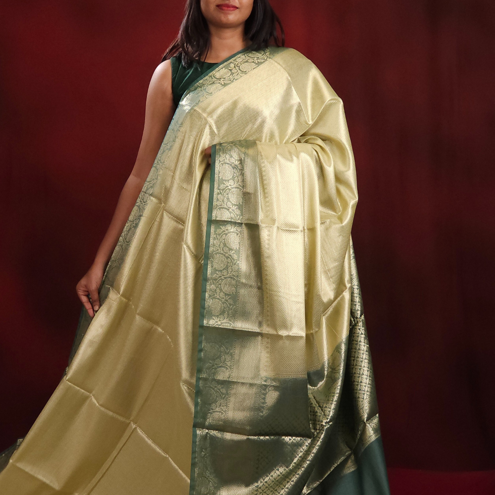 Elevate your style with our stunning Banaras Tissue Saree,allover intricate zari brocade with luxurious zari woven borders and rich brocade pallu paired with running blouse......