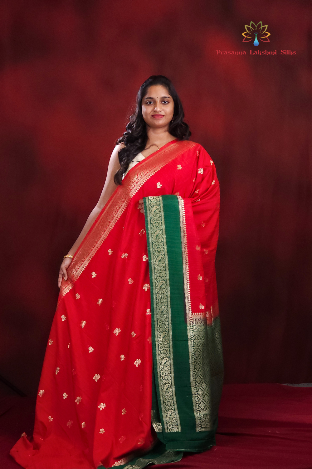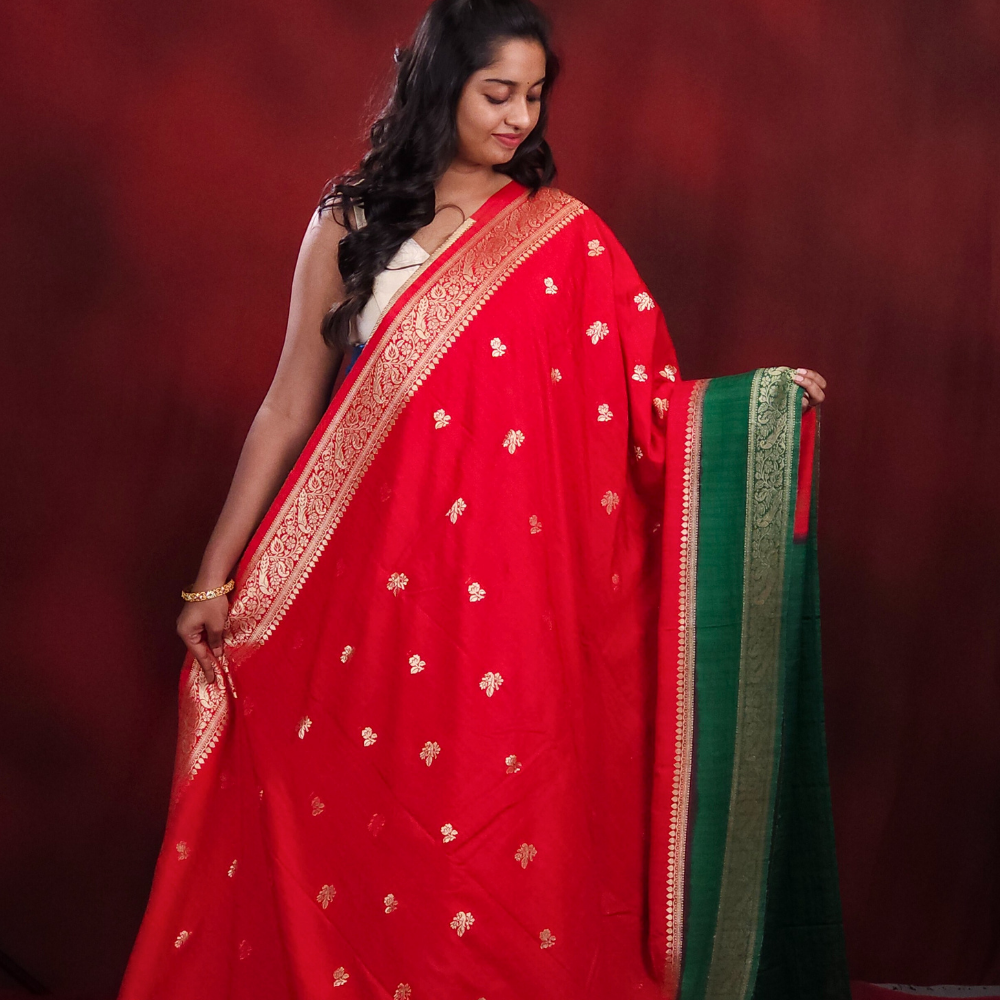 Red Semi Dupion Saree