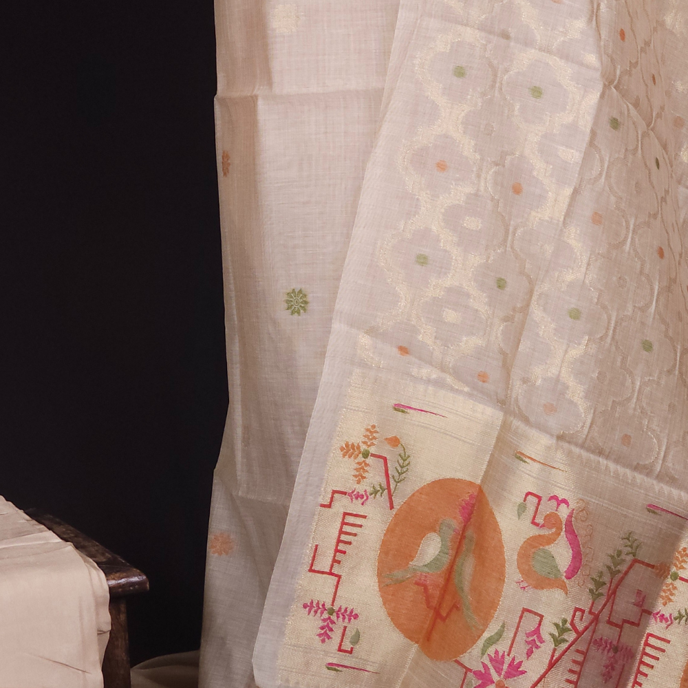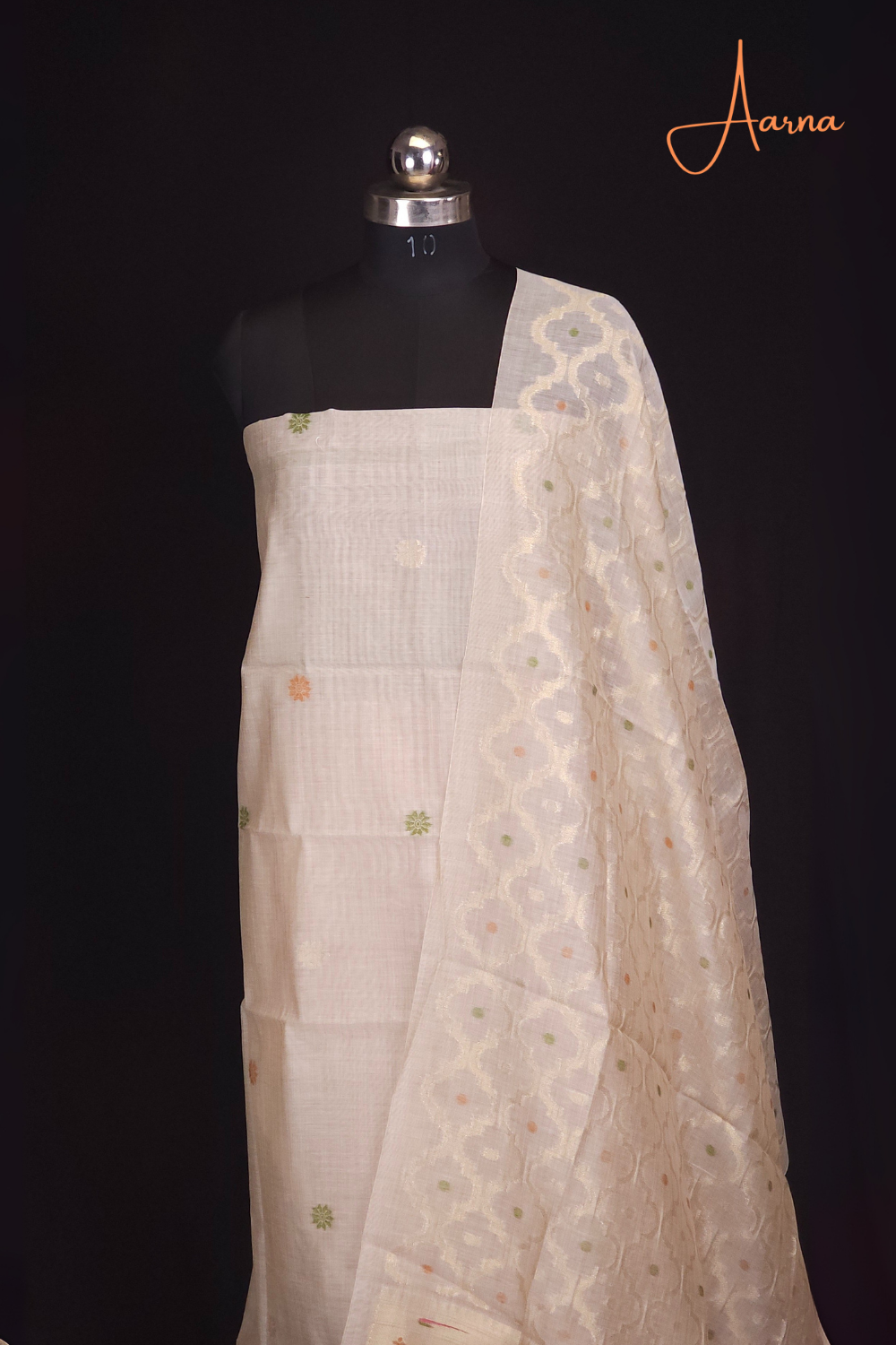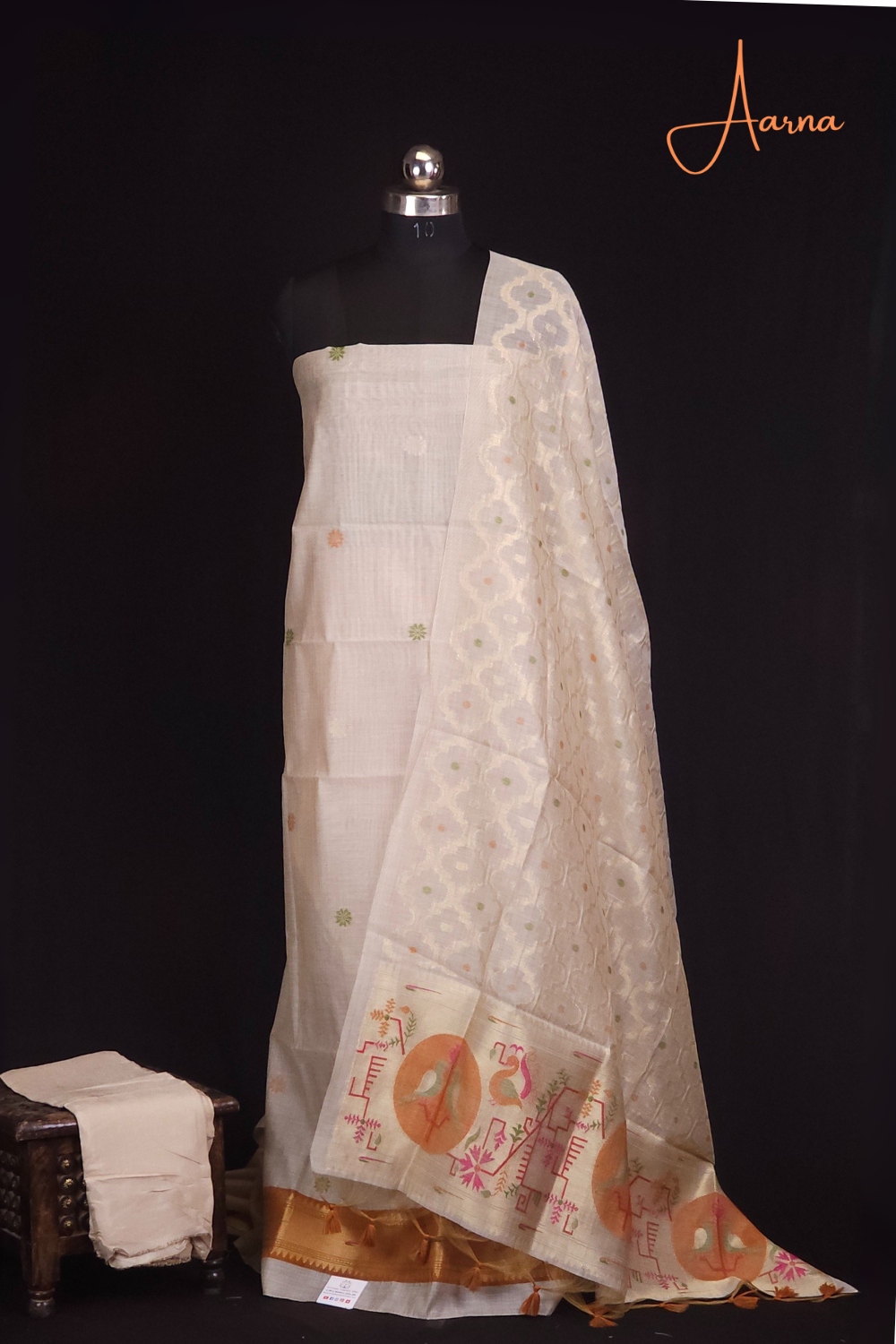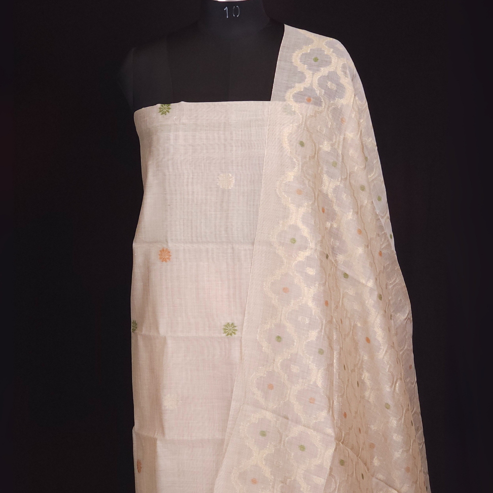 Beige & Mustard Yellow Chanderi Dress Material