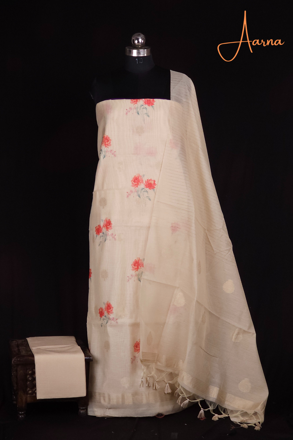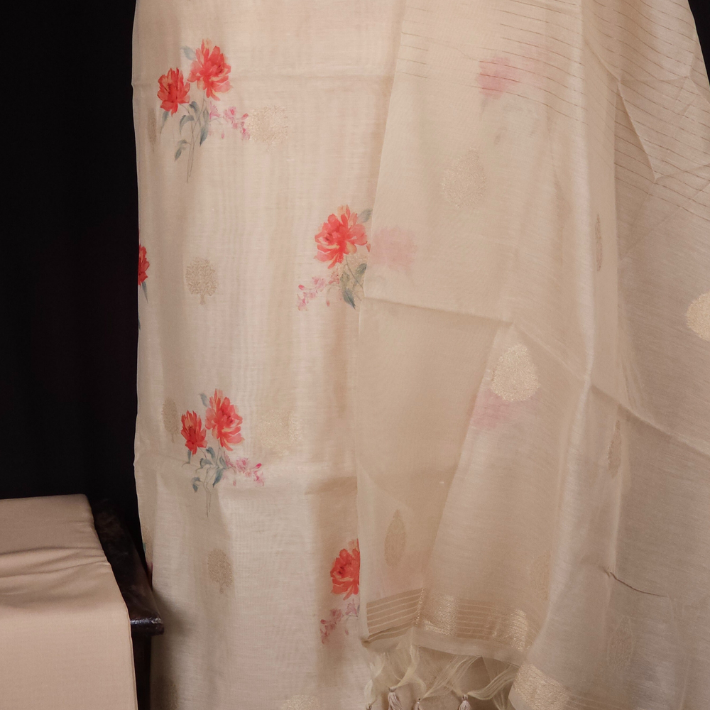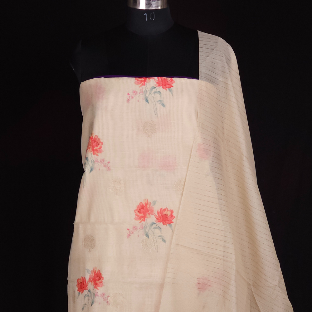 Cream Chanderi Dress Material