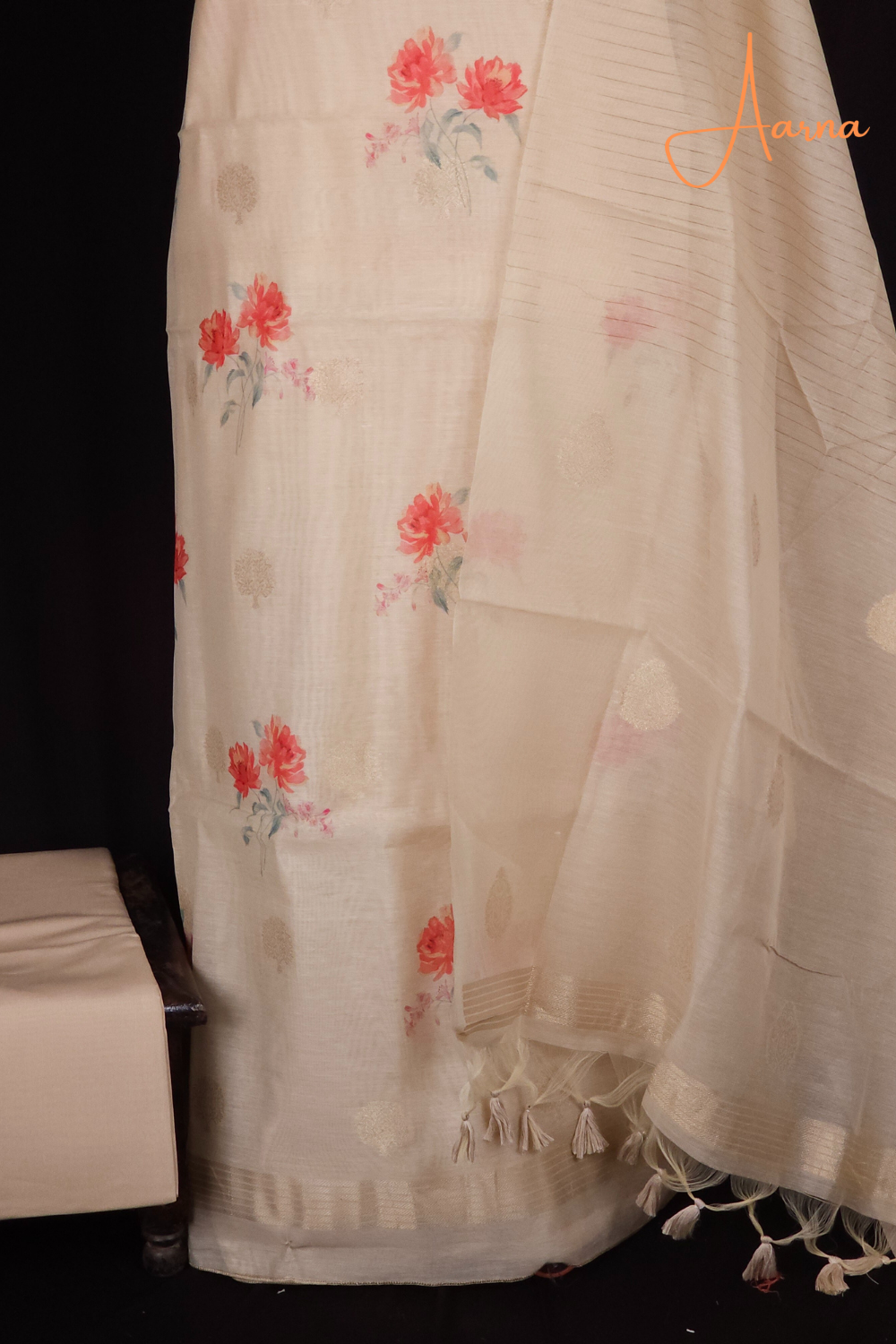 Elevate your ethnic wardrobe with our elegant Chanderi top, featuring allover floral digital prints beautifully complemented by zari-woven motifs., paired with a plain bottom and a richly woven dupatta paired with tassels.....