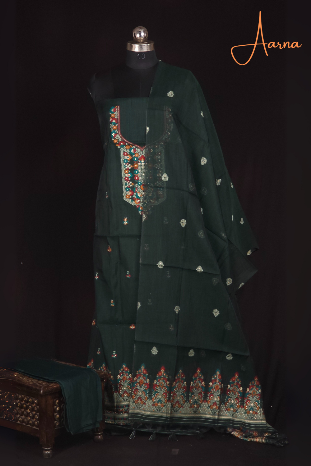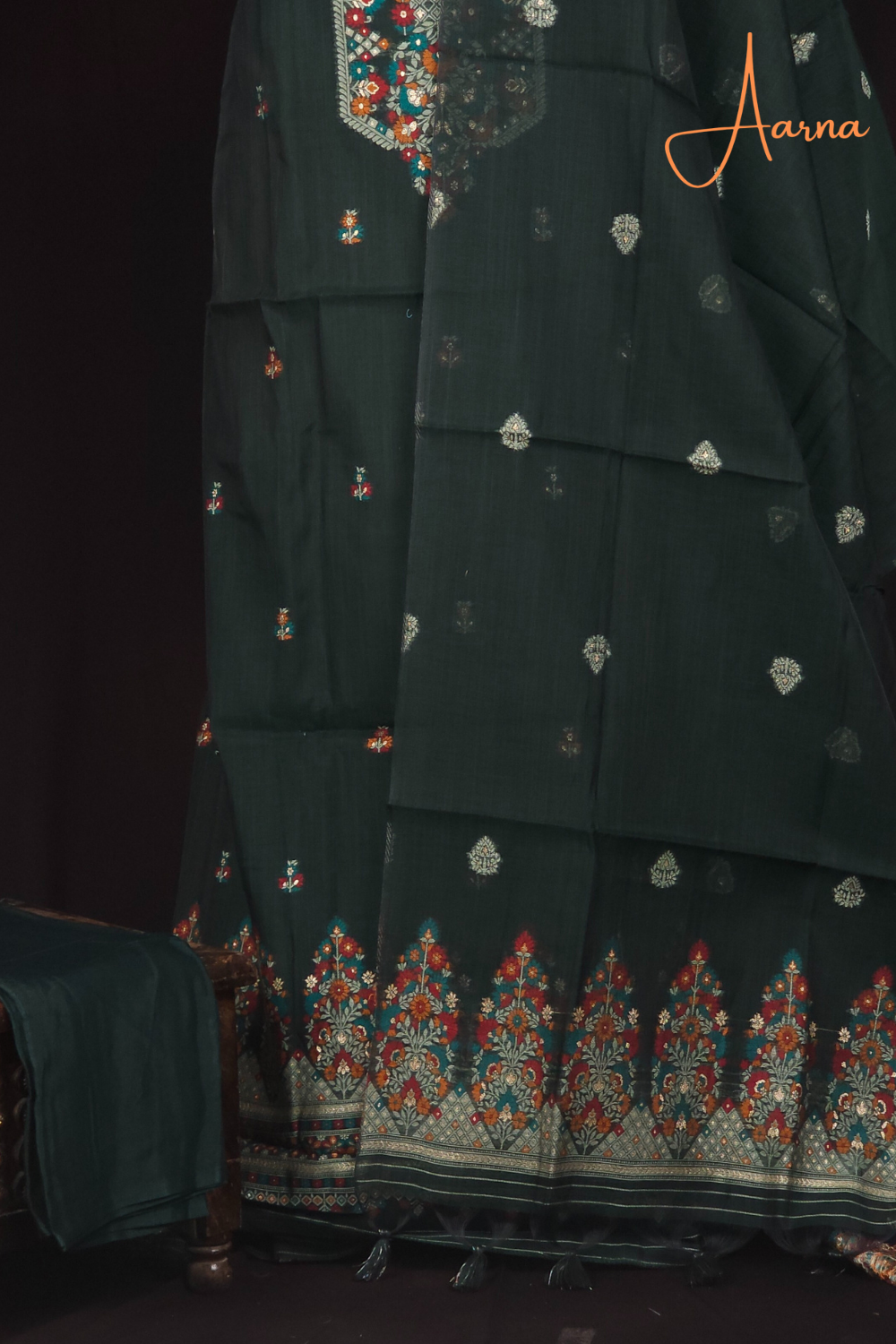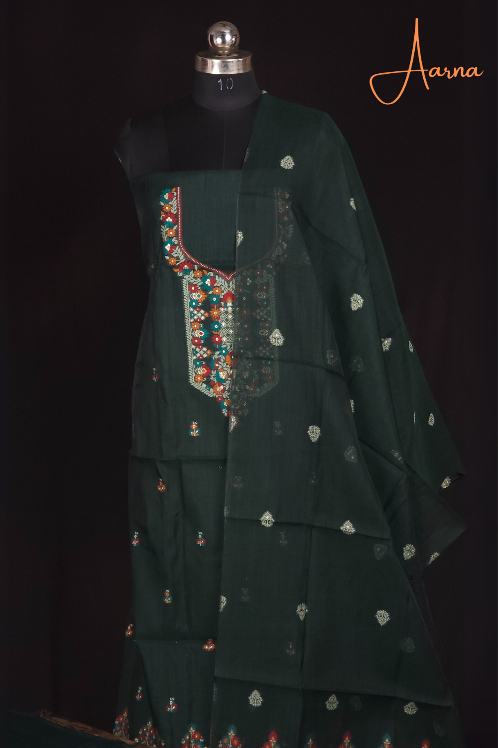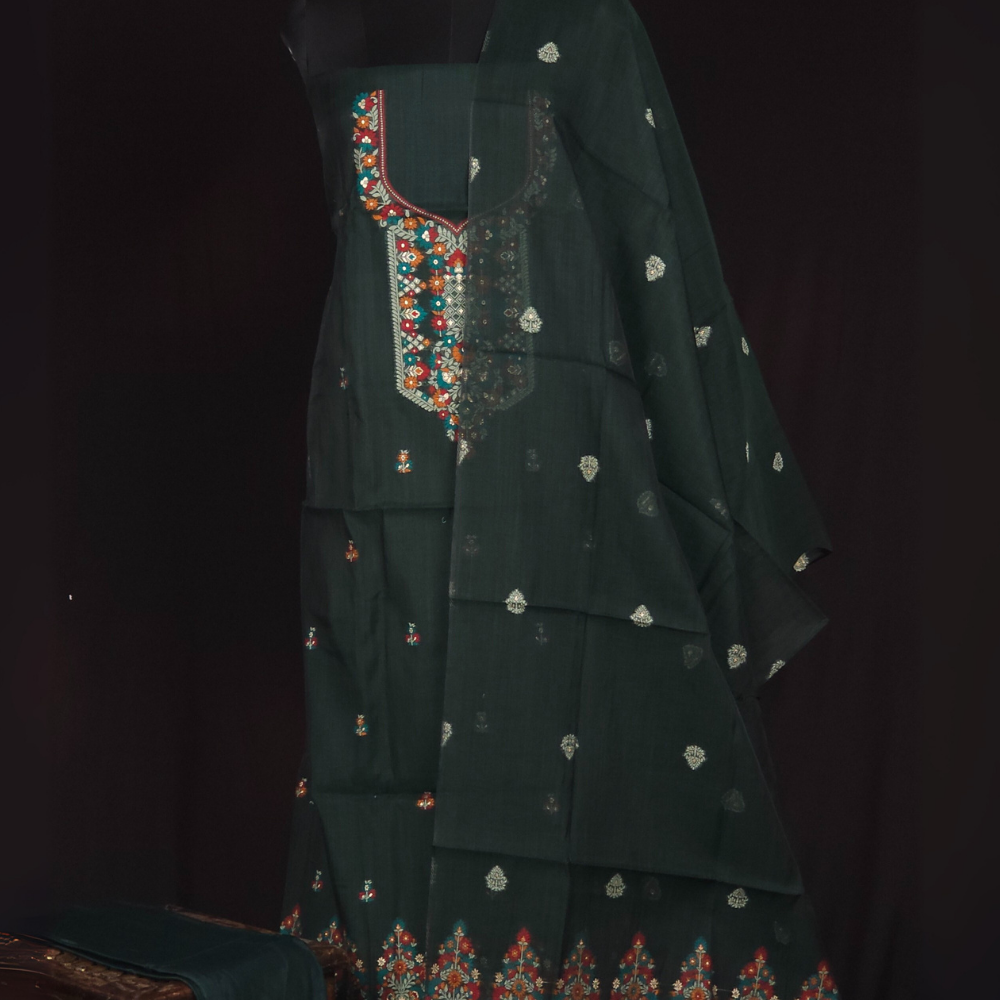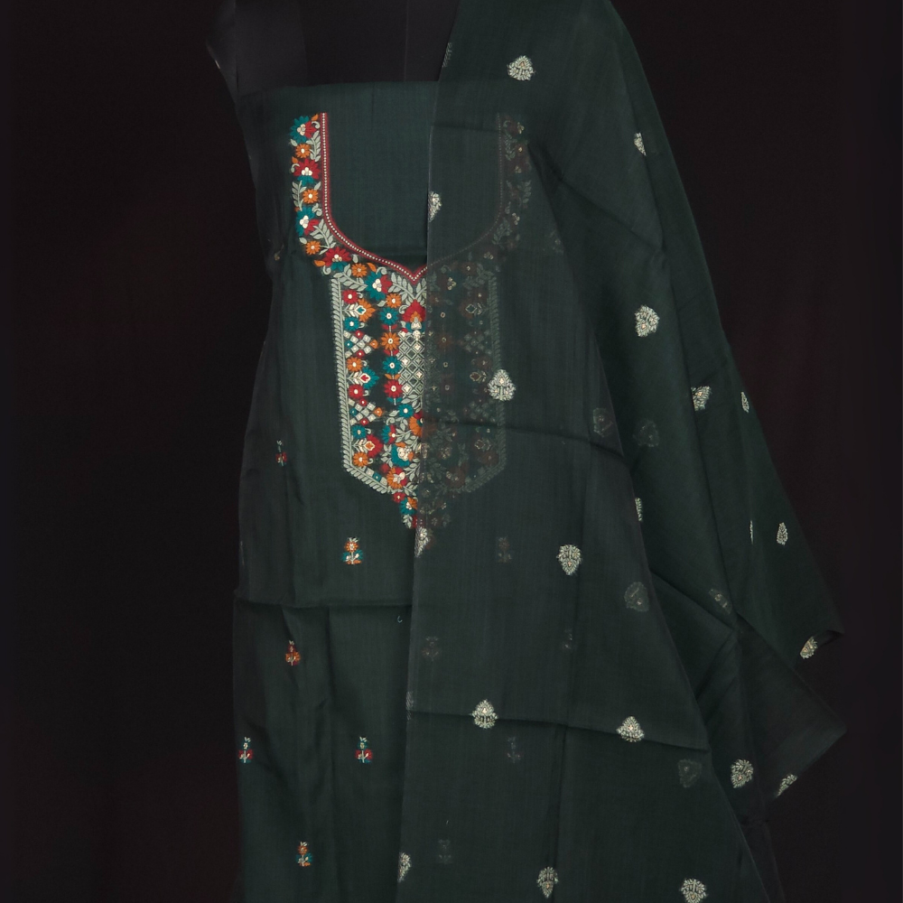 Green Chanderi Dress Material