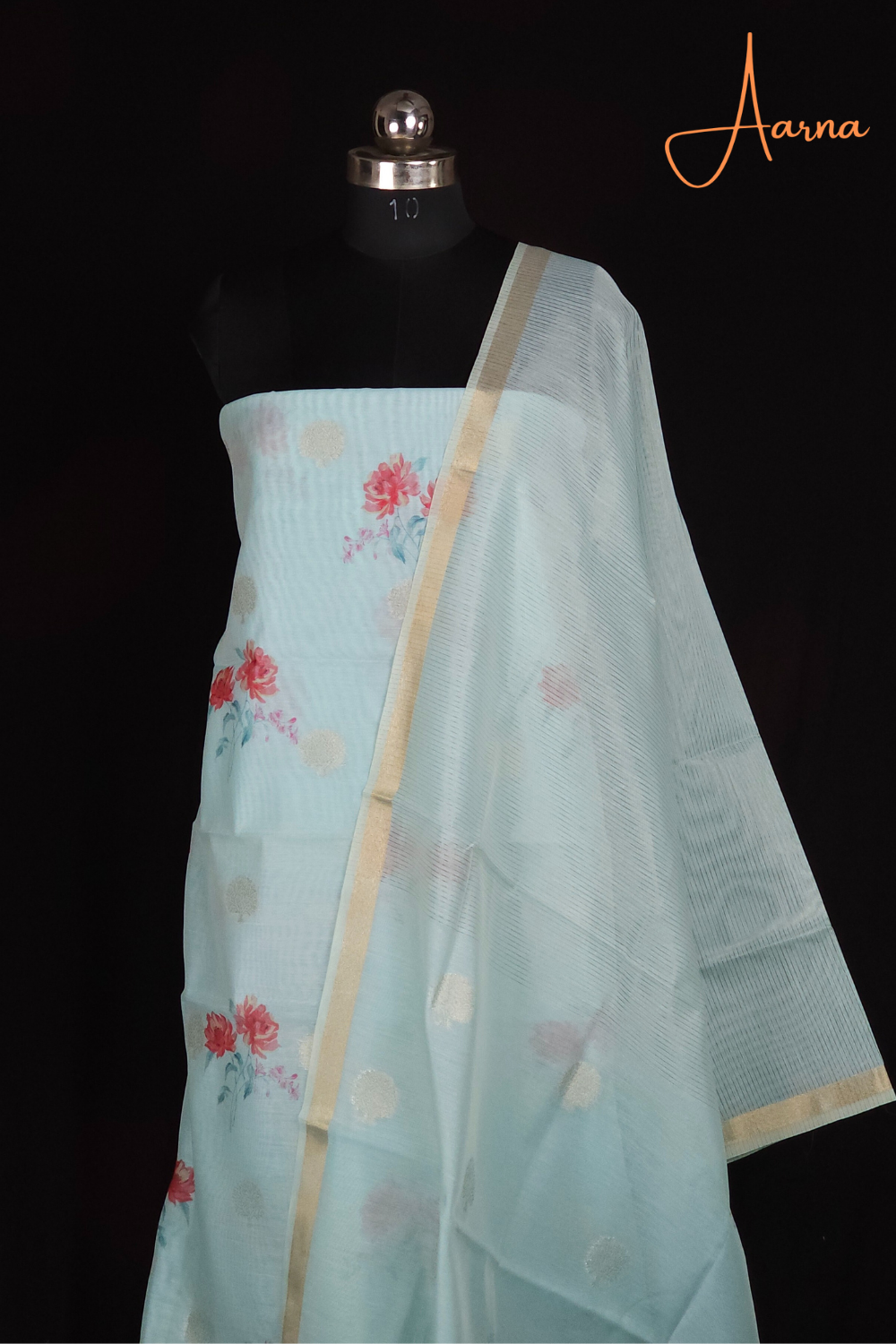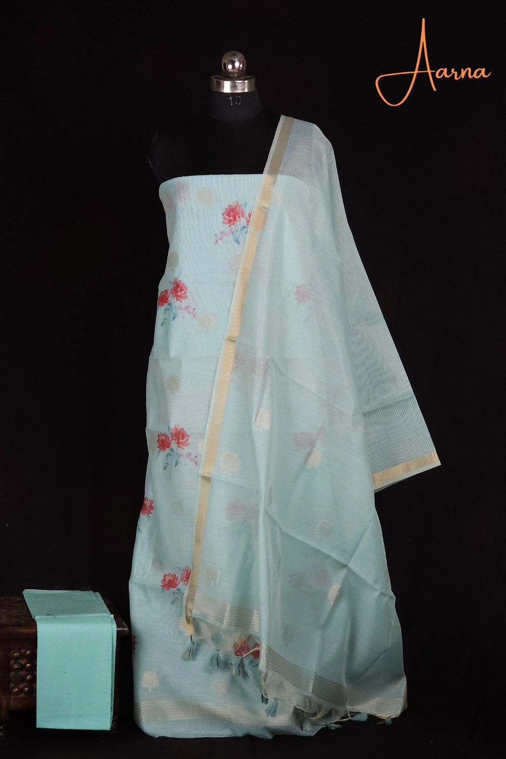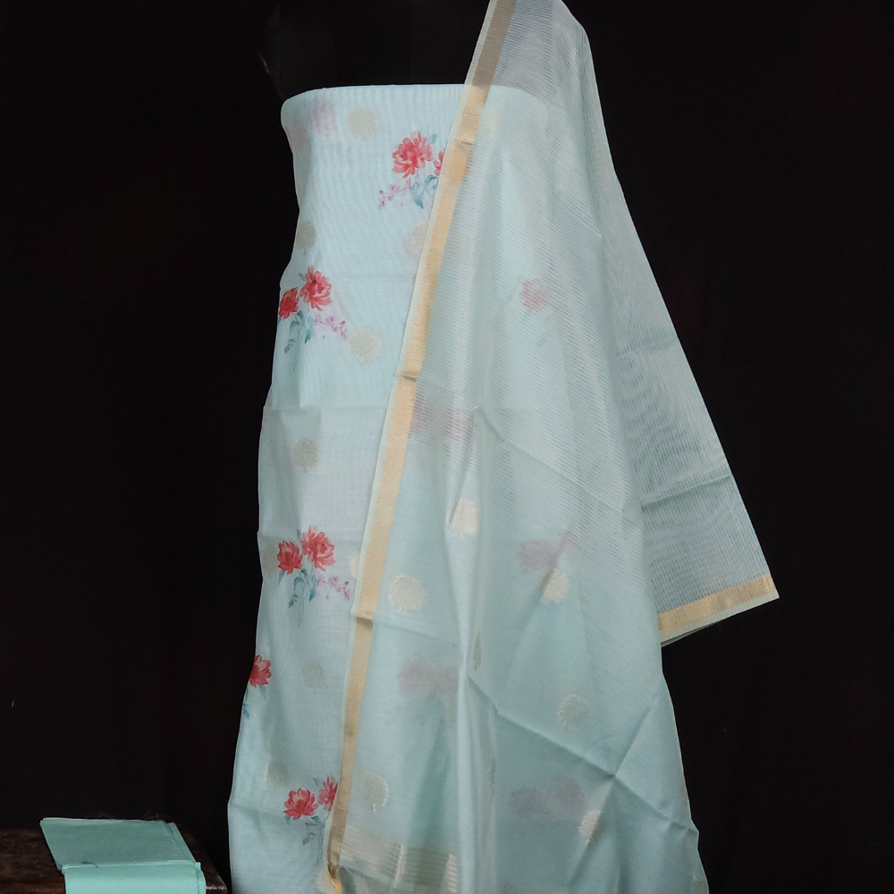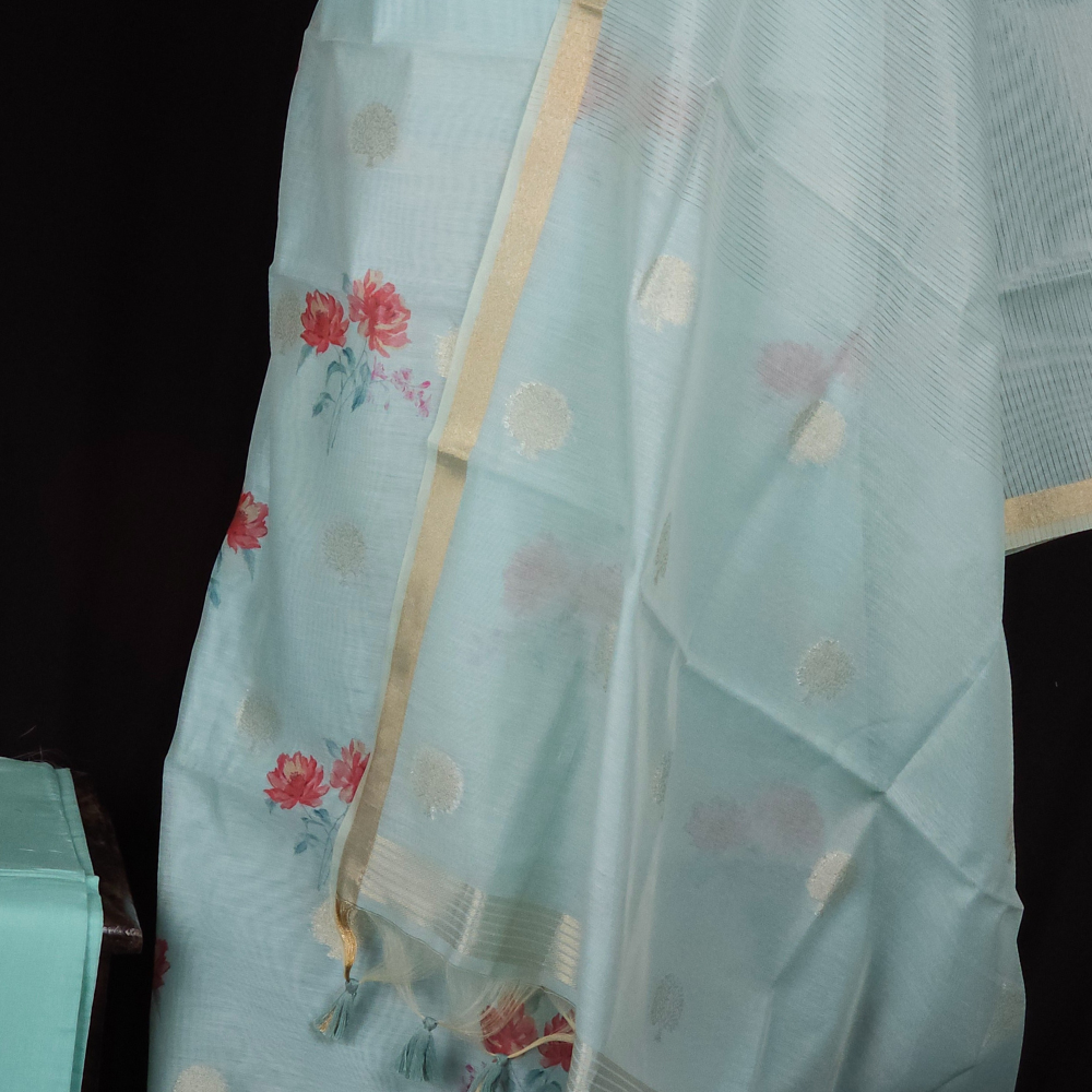 Light Sky Blue Chanderi Dress Material