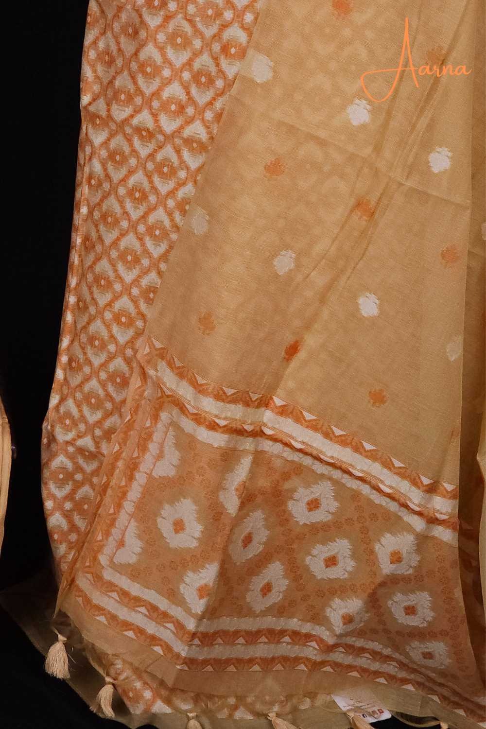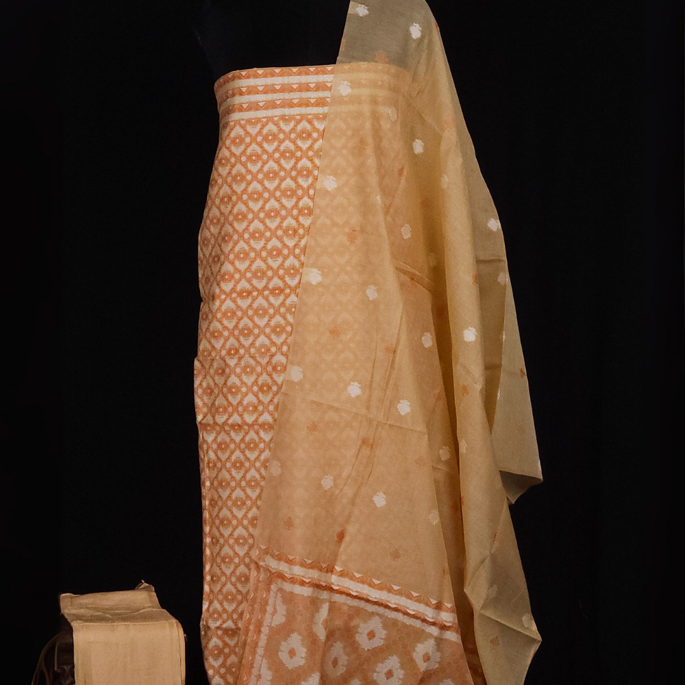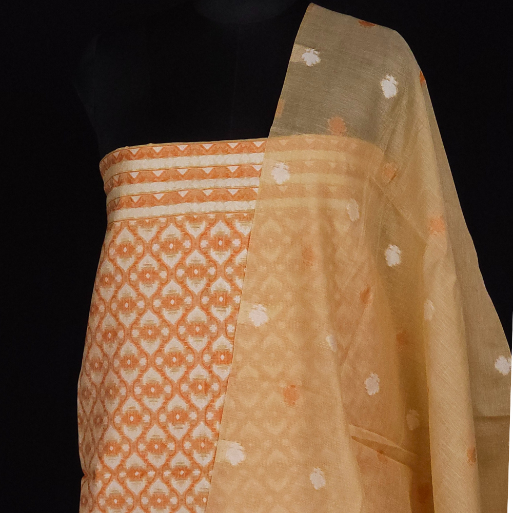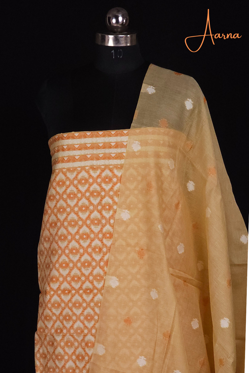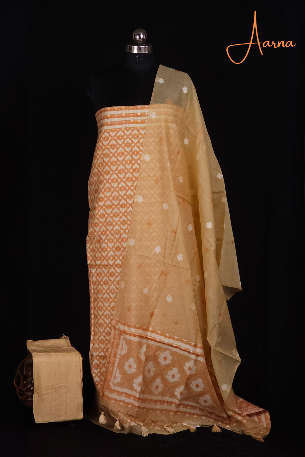 Elegant Linen top allover jhamdhani weaving,paired with plain bottom and dupatta with motifs and two sided jhamdhani pallu paired with tassels......