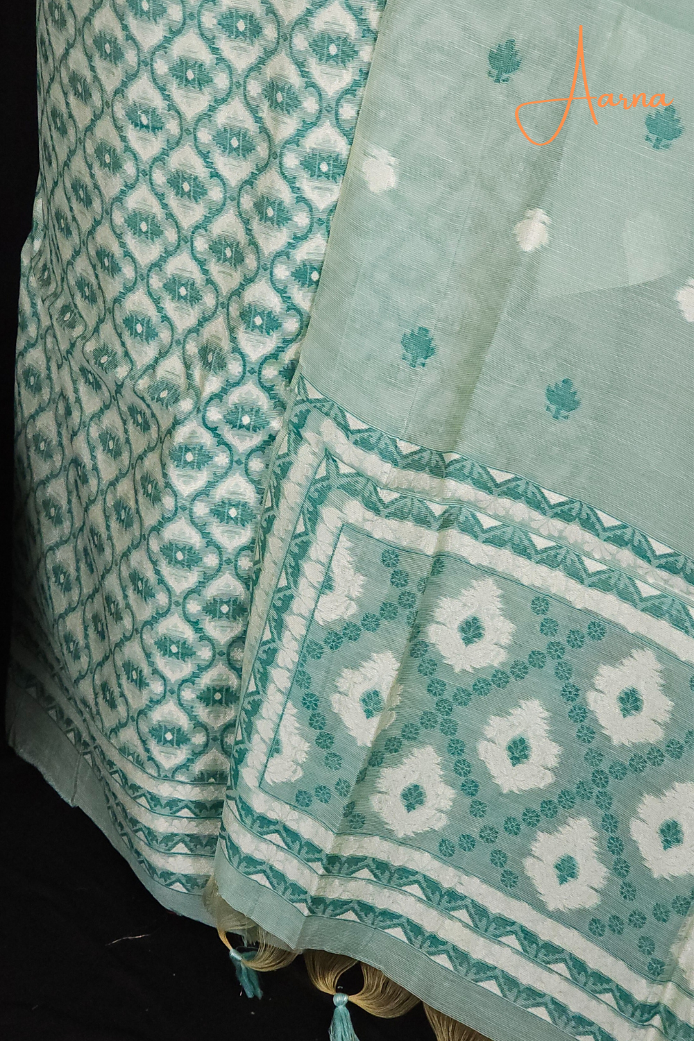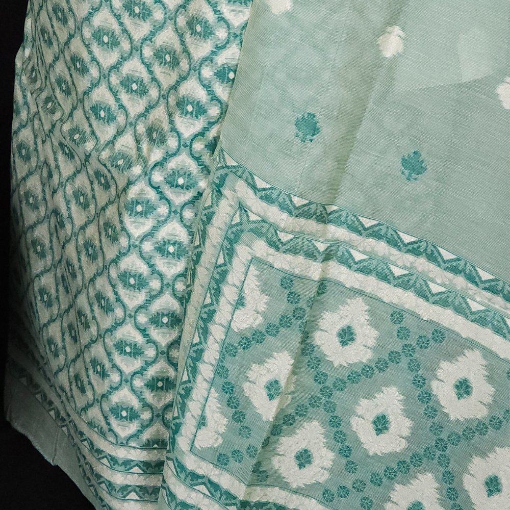Elegant Linen top allover jhamdhani weaving,paired with plain bottom and dupatta with motifs and two sided jhamdhani pallu paired with tassels......