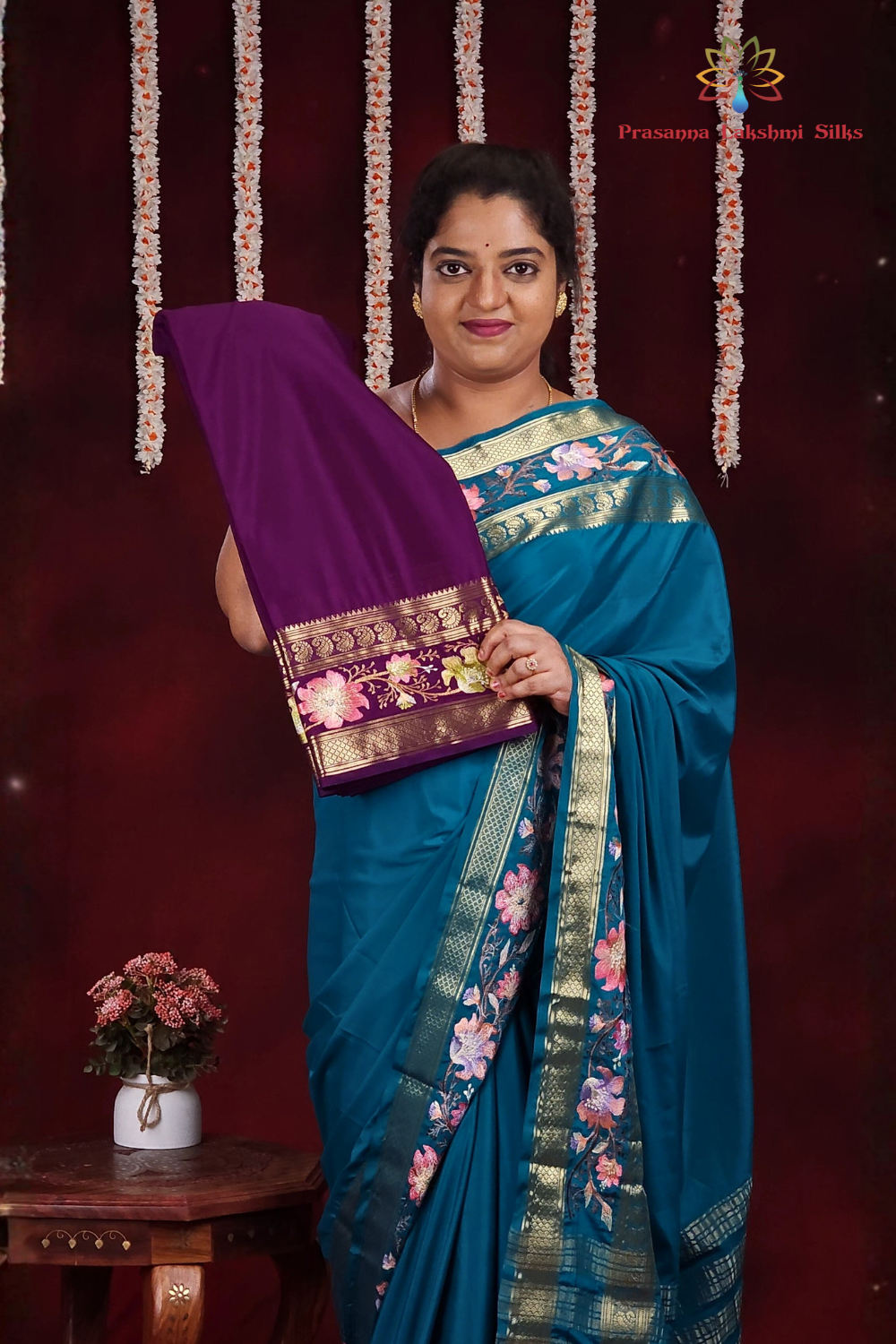 Experience timeless elegance with our Semi mysore silk, beautifully crafted with zari woven gap borders and floral thread woven design. A rich brocade pallu adds to the grandeur paired with a running blouse....
