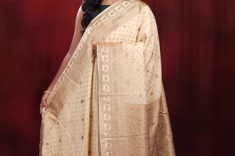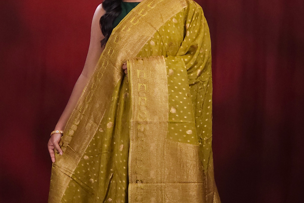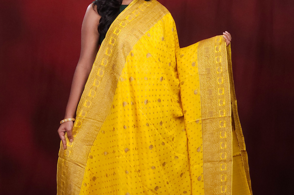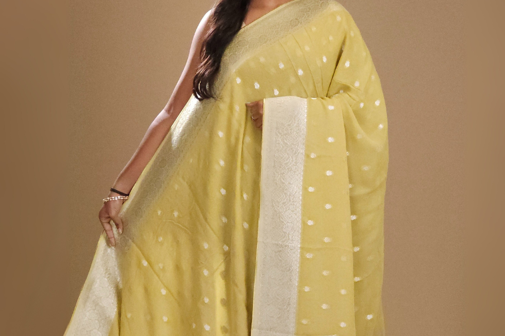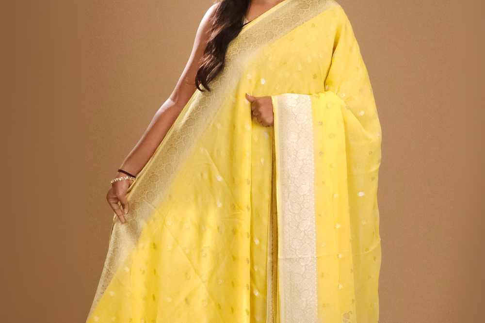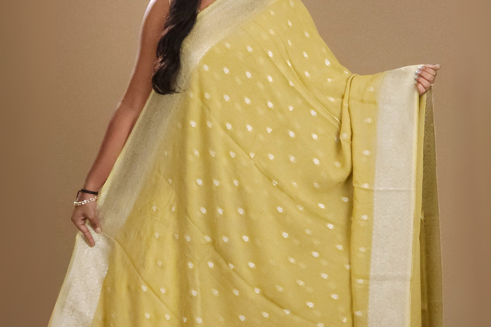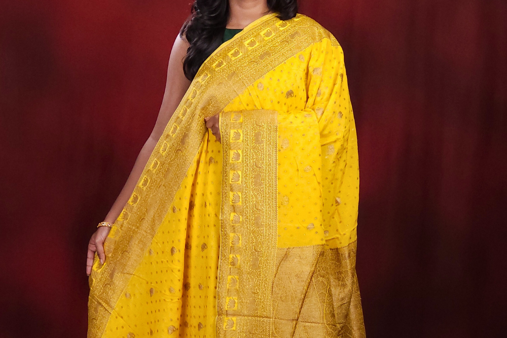 Yellow Semi Banaras Khaddi Georgette Sarees