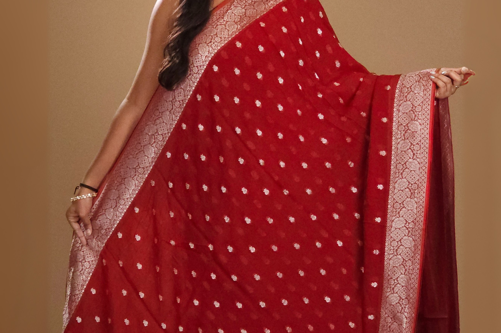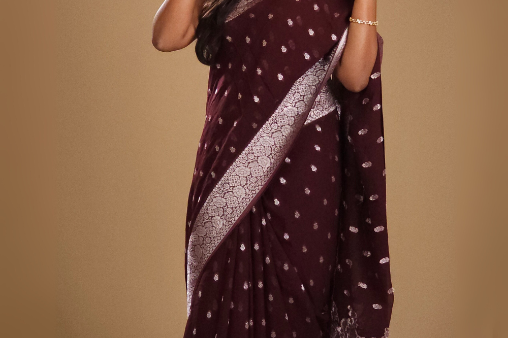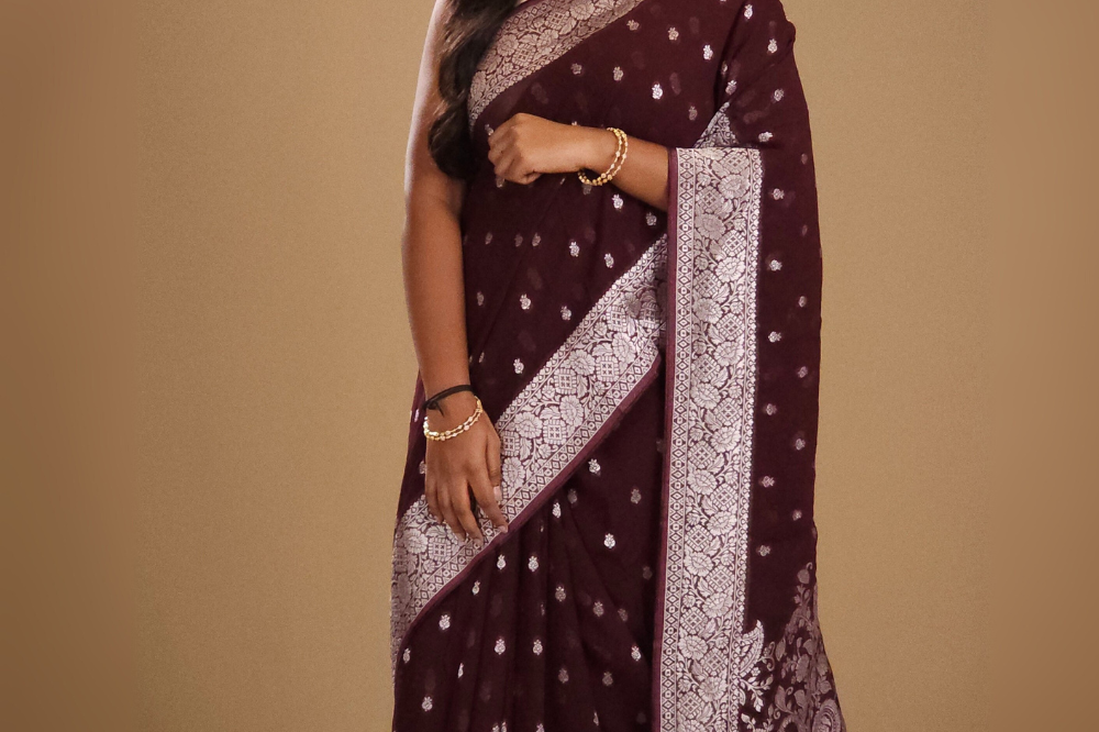 Light Ash Semi Banaras Khaddi Georgette Sarees