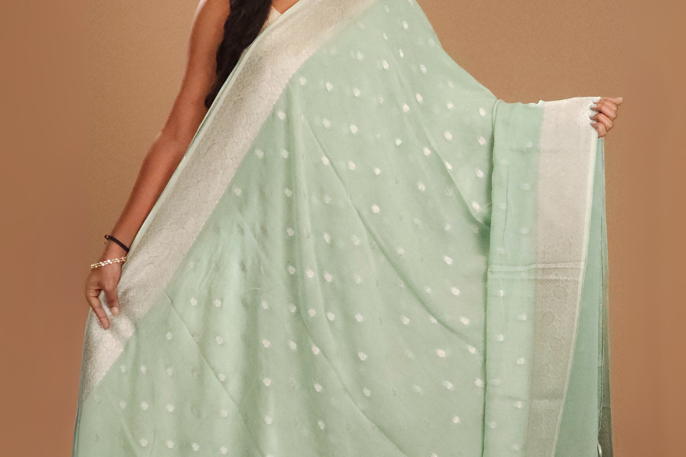Mint Green Semi Banaras Khaddi Georgette Sarees