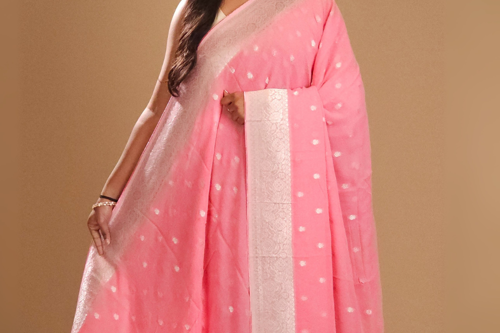 Baby Pink Semi Banaras Khaddi Georgette Sarees