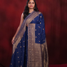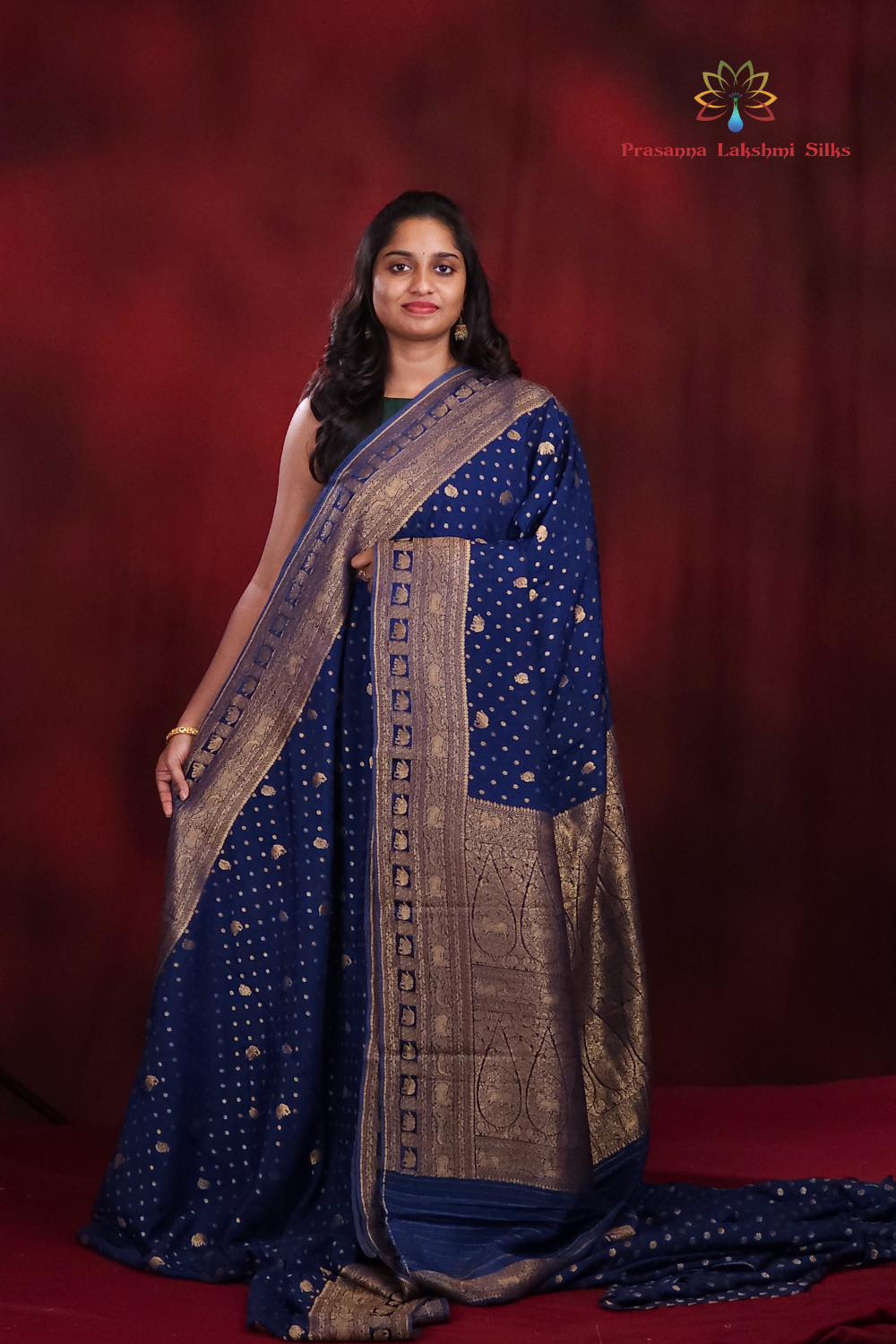 Experience the epitome of luxury and elegance with our stunning Handloom Pure Banarasi Crape Saree All Over Antique Zari motifs , Zari Woven Borders, Rich Pallu, and Running Blouse