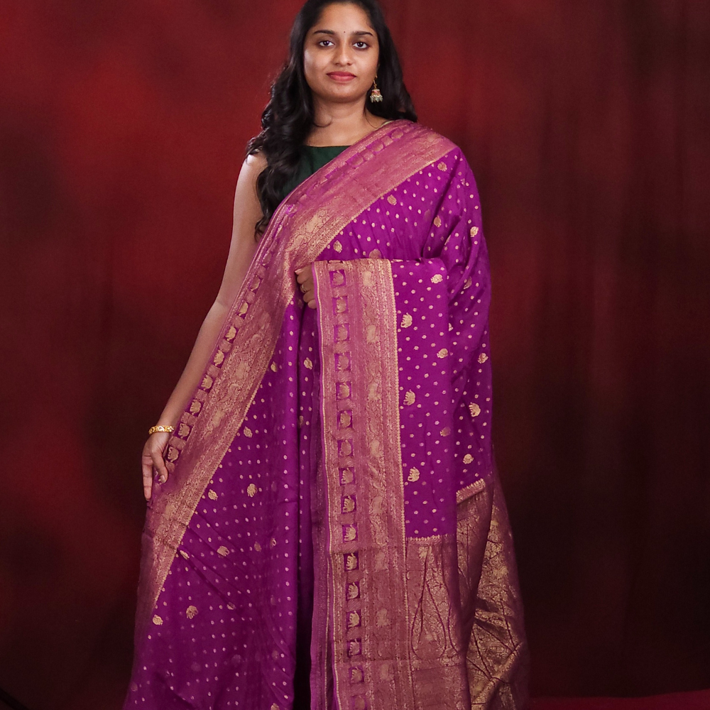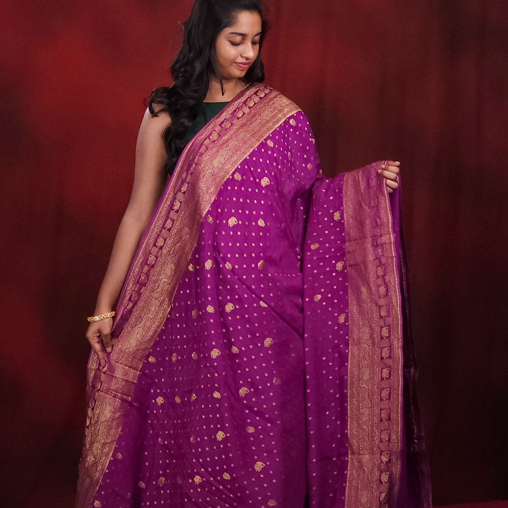 Purple Banaras Crape Sarees