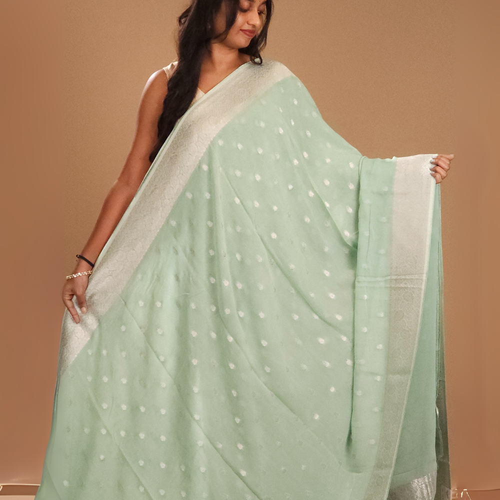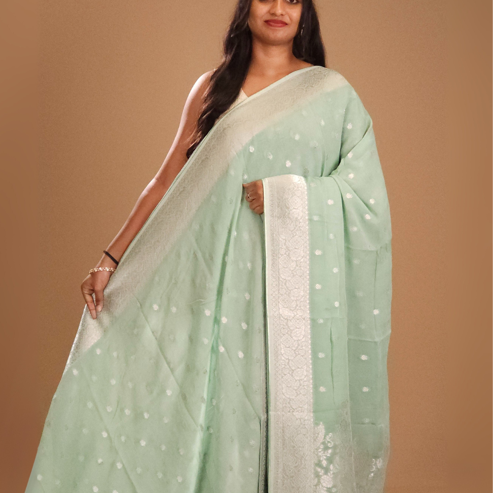 Seafoam Green Georgette Saree