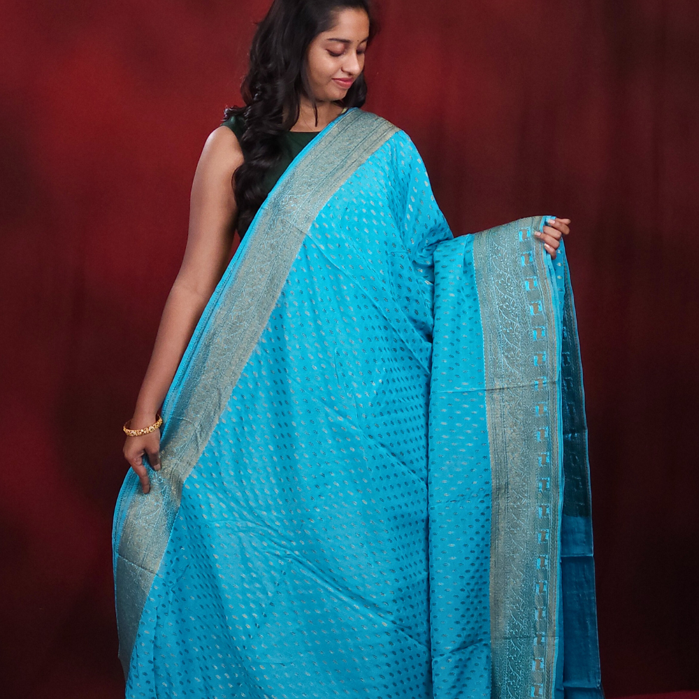 Sky Blue Banaras Crape Sarees