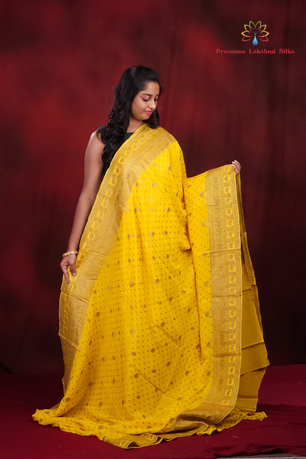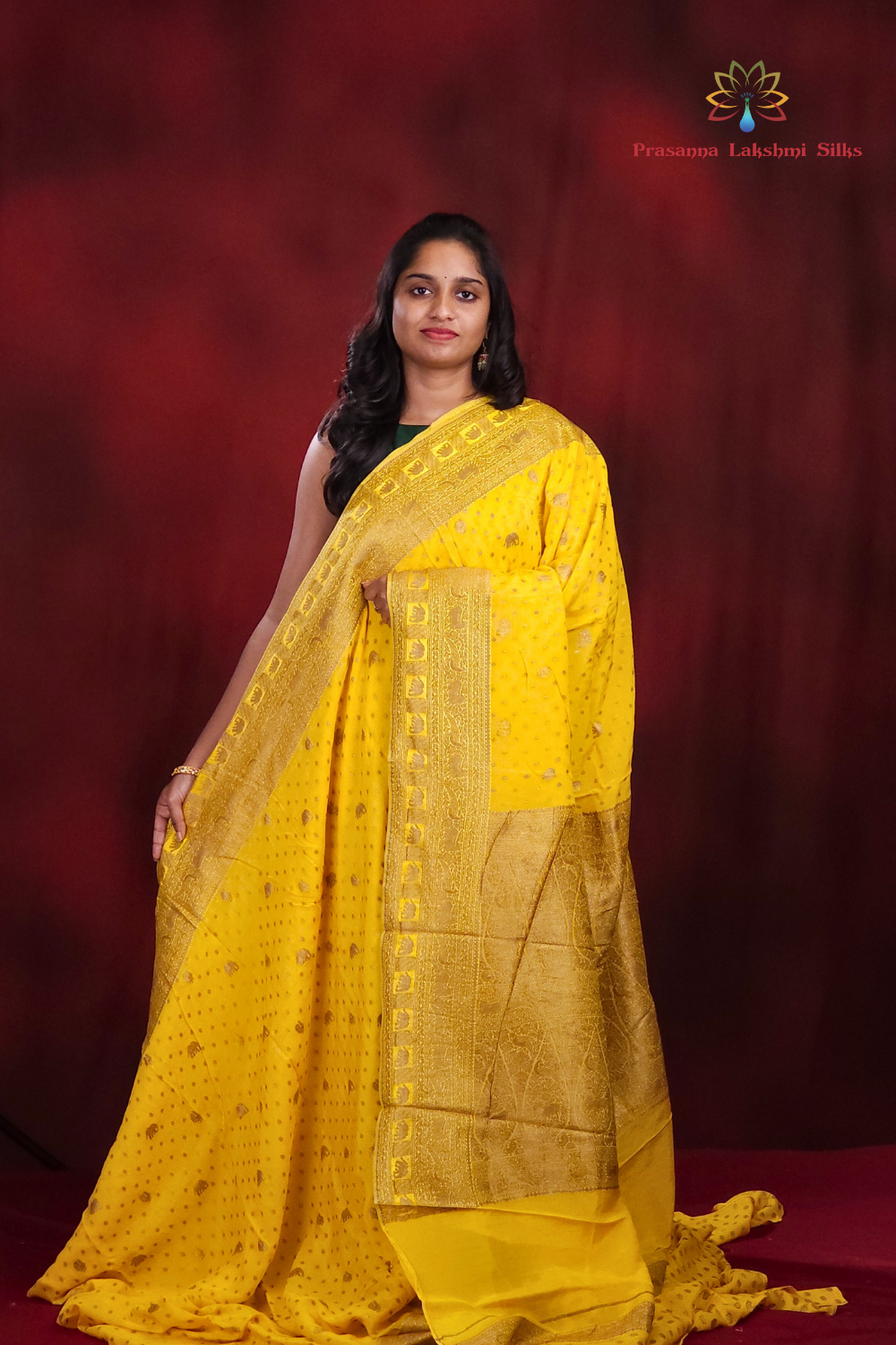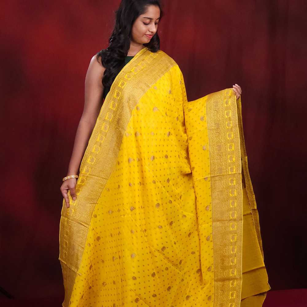 Experience the epitome of luxury and elegance with our stunning Handloom Pure Banarasi Crape Saree All Over Antique Zari motifs , Zari Woven Borders, Rich Pallu, and Running Blouse