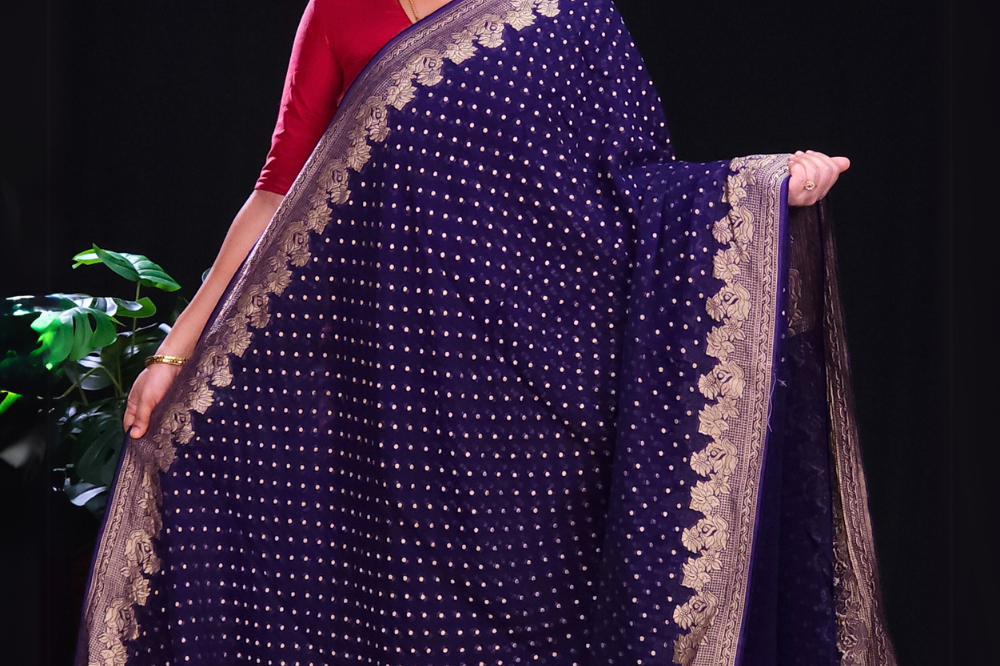 Prussian Blue Banarasi Georgette Saree