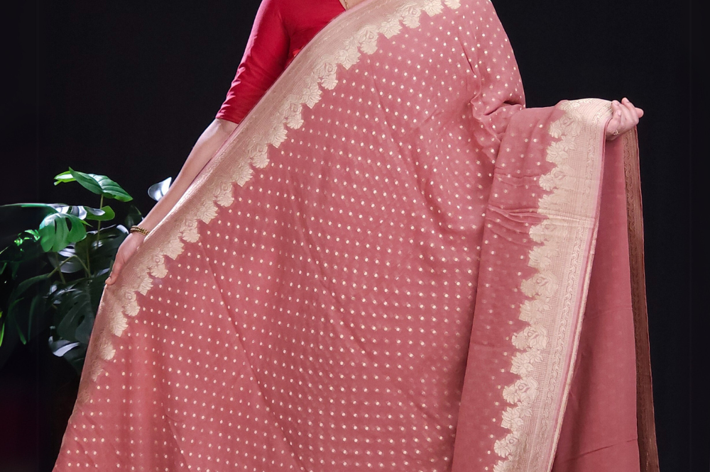 Reddish Pink Banarasi Georgette Saree