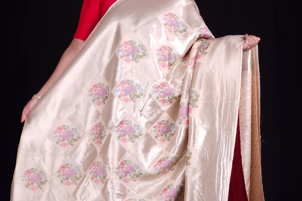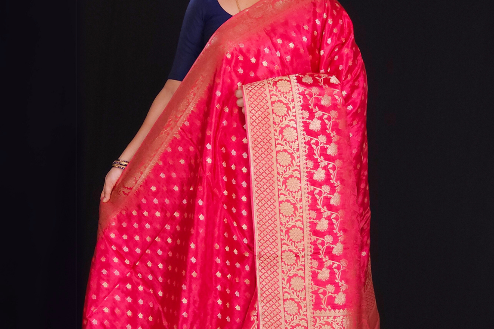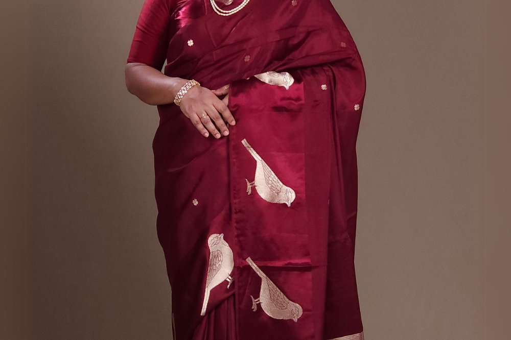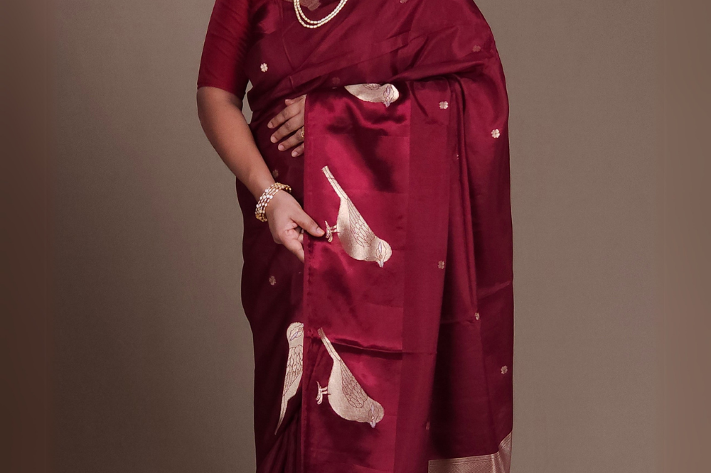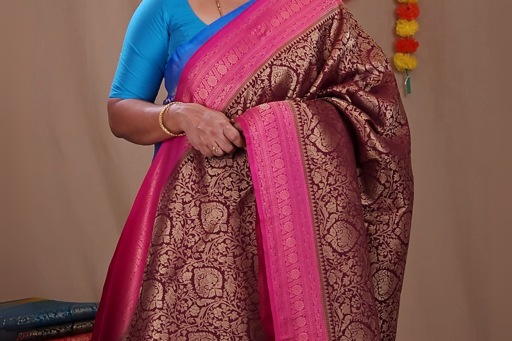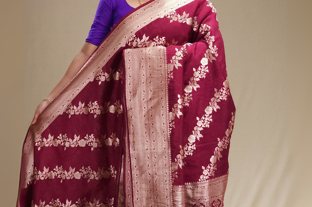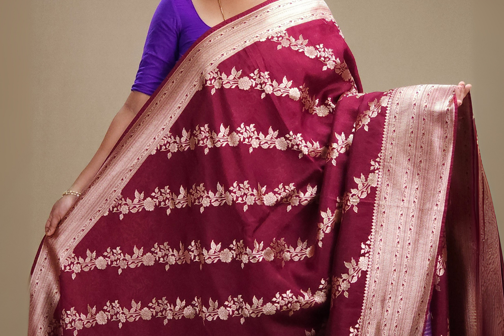 Deep Maroon and Olive Green Banaras Mashroo sarees
