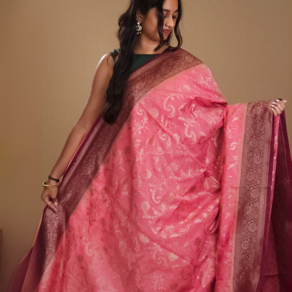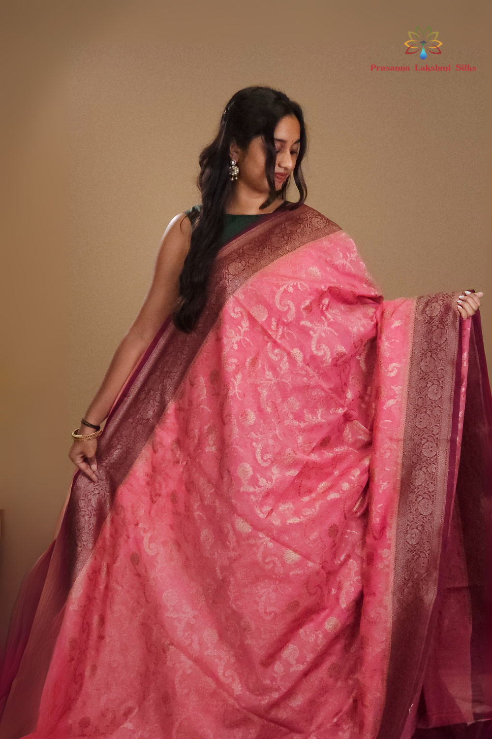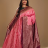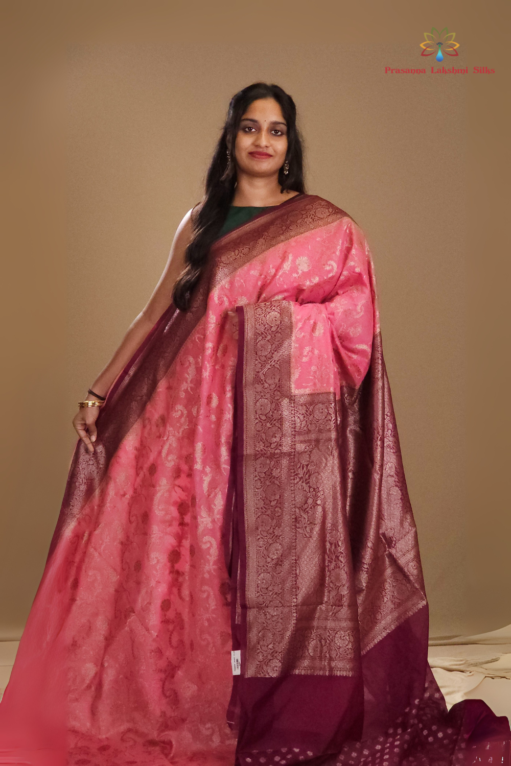 Baby Pink and Dark Purple Banarasi Organza Saree