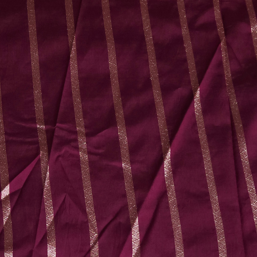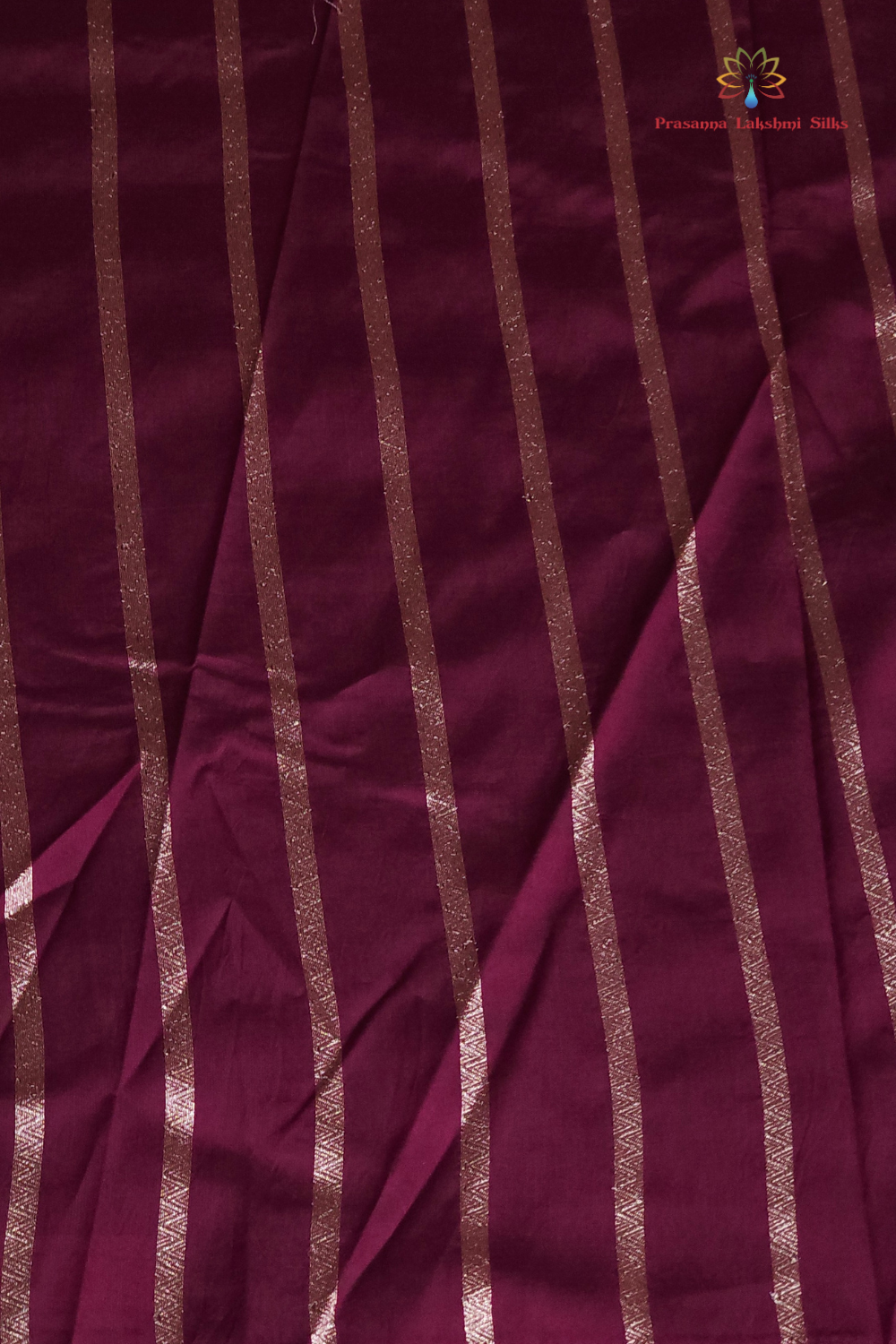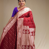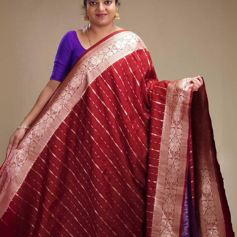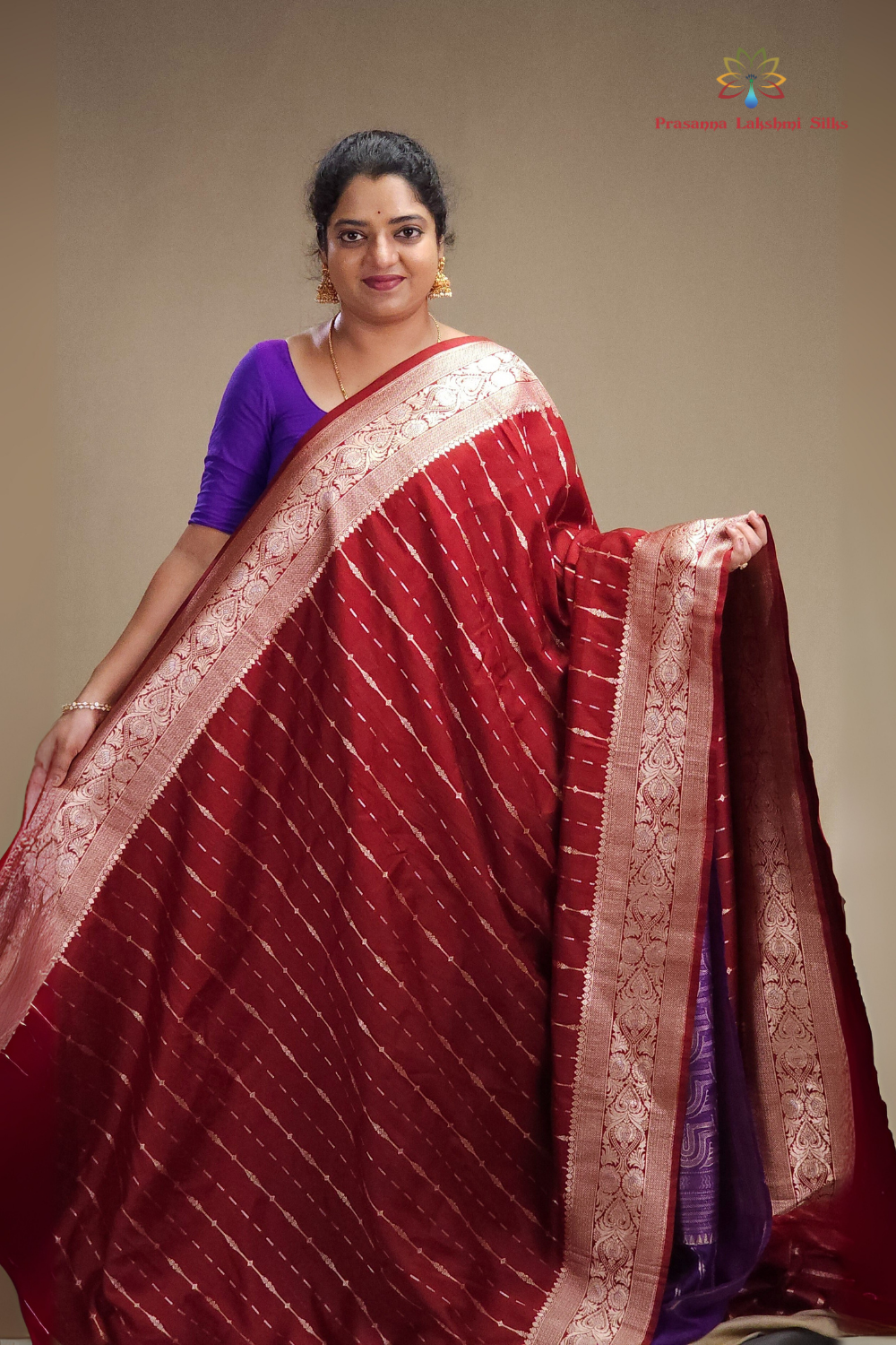 Experience timeless elegance with our Banarasi sarees, beautifully crafted with zari woven stripes design allover with zari-woven borders. A rich brocade pallu adds to the grandeur paired with a running blouse....