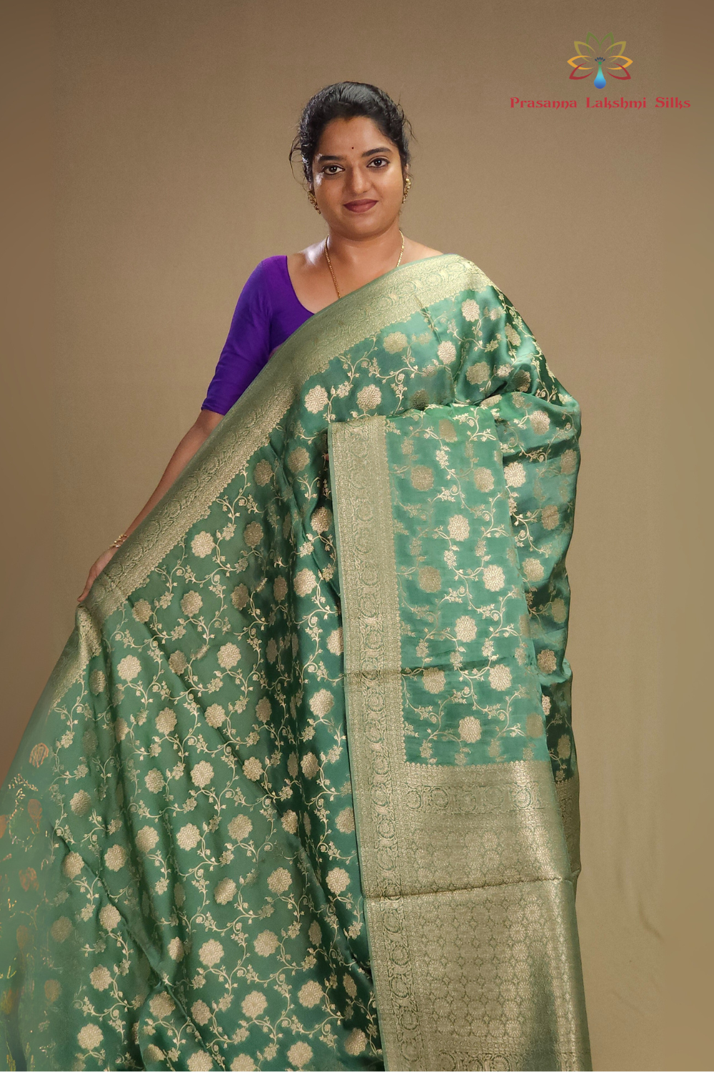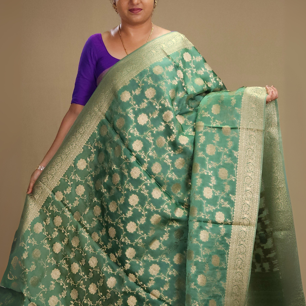 Mint Green Banarasi Mashru Silk Saree